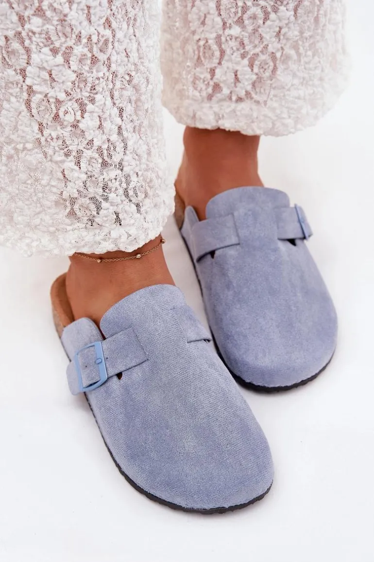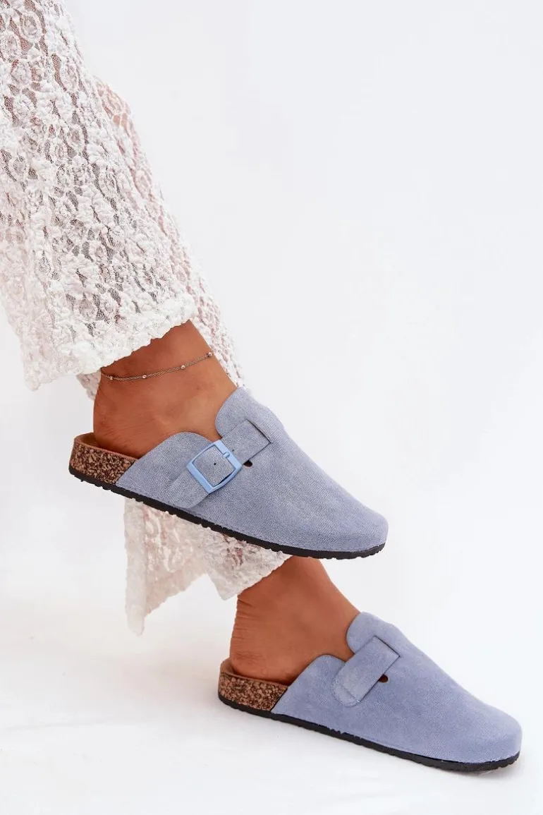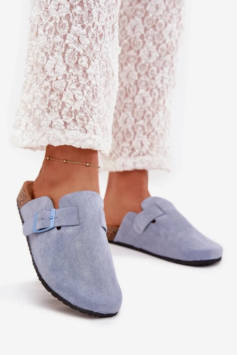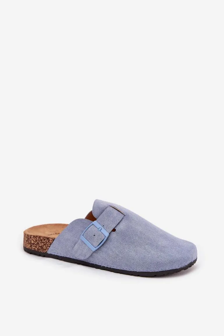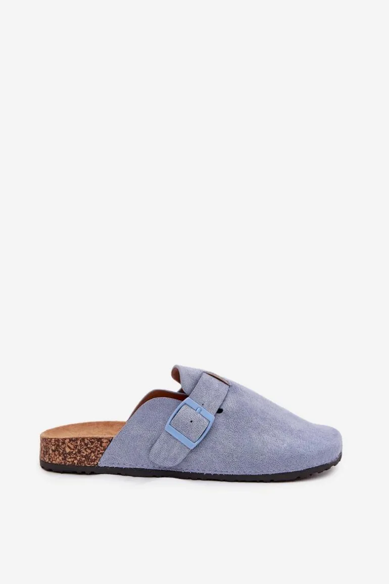Klapki Chodaki Damskie i Na Korkowej Platformie Z Klamrą Niebieskie Klarae
