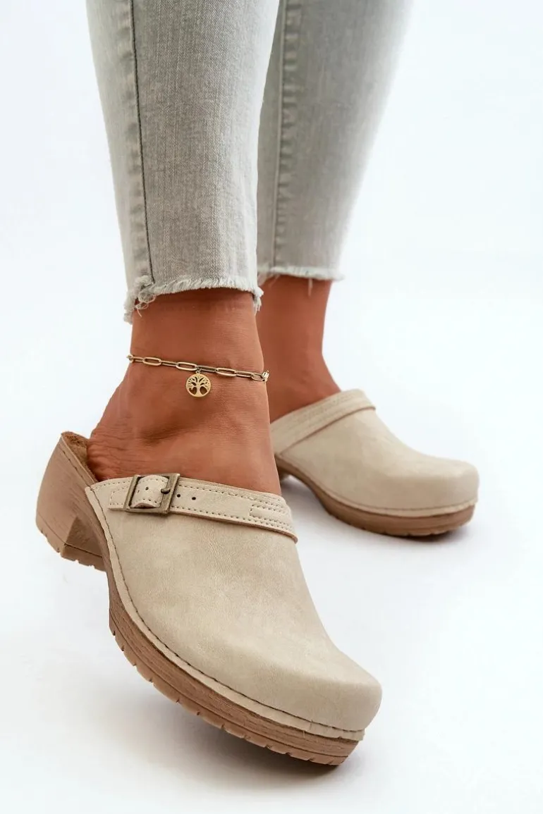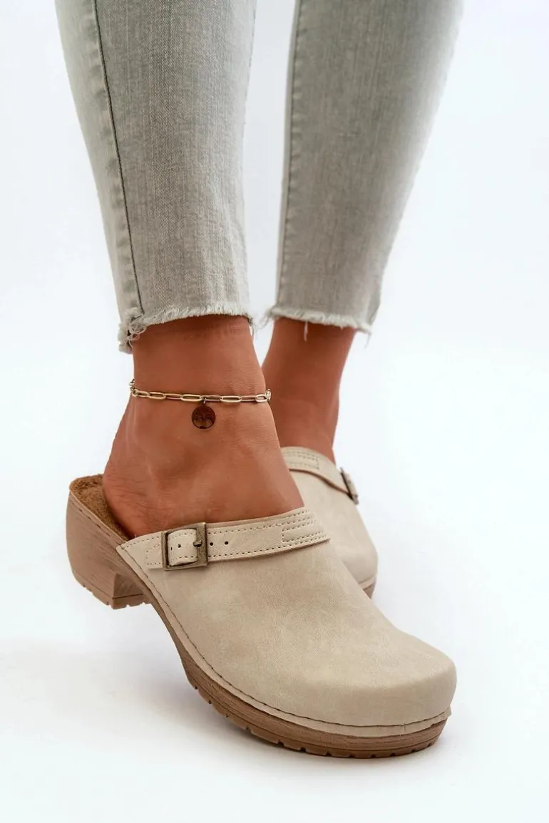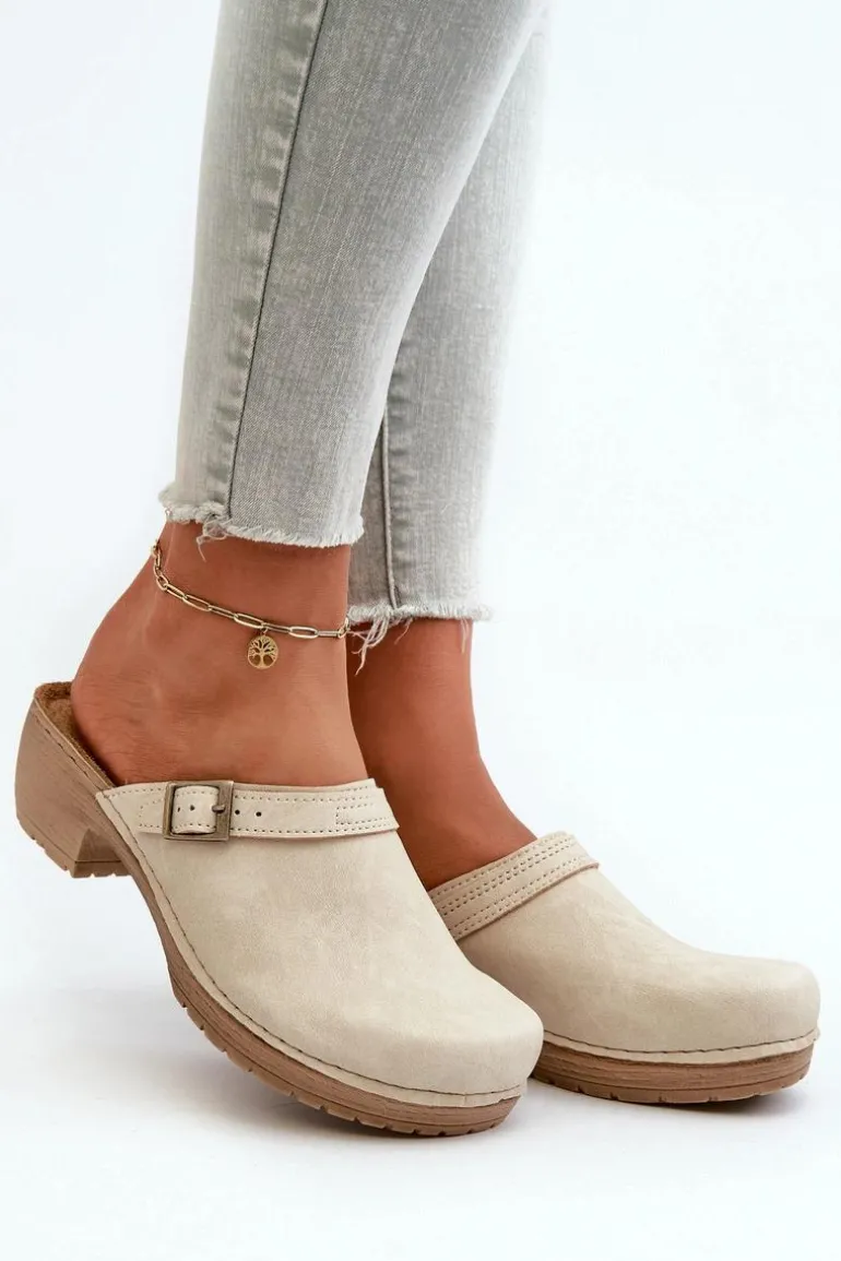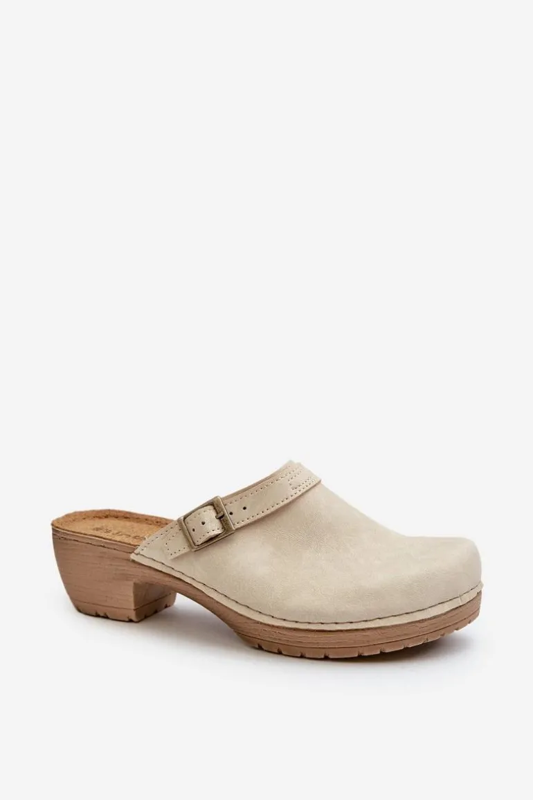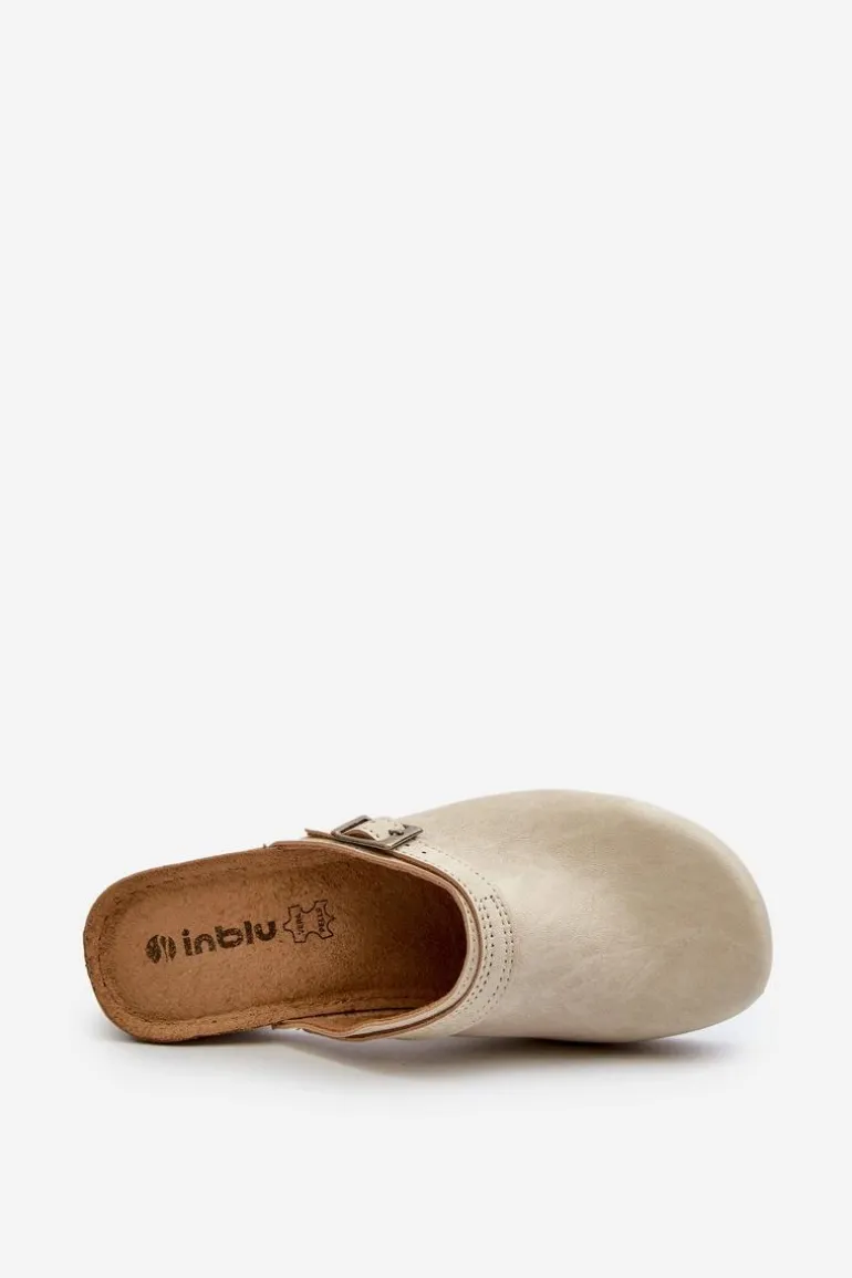 Klapki damskie od marki INBLU. Wykonane z wysokiej jakości skóry ekologicznej. Osadzone na niskim obcasie. Ozdobione paseczkiem z klamrą. Wkładka COMFORT ANATOMICO jest profilowana, dostosowana do kształtu anatomicznego stopy, wykonana z miękkiej, naturalnej skóry. Spód wykonany z lekkiego i elastycznego tworzywa – zapewnia sprężystość i bardzo dobre przenoszenie obciążeń na podłoże. Przy wyborze rozmiaru prosimy sugerować się tabelą rozmiarów.
