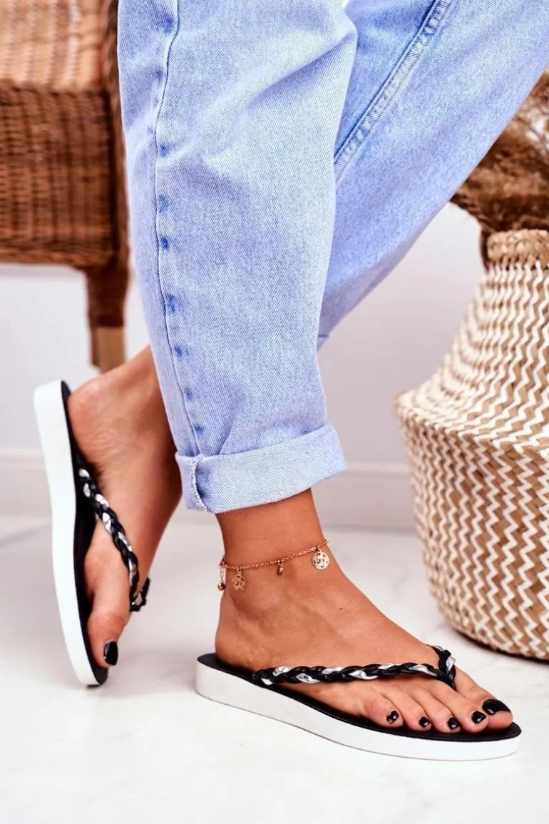 Klapki Damskie Japonki Pleciony Pasek Czarne Peggie