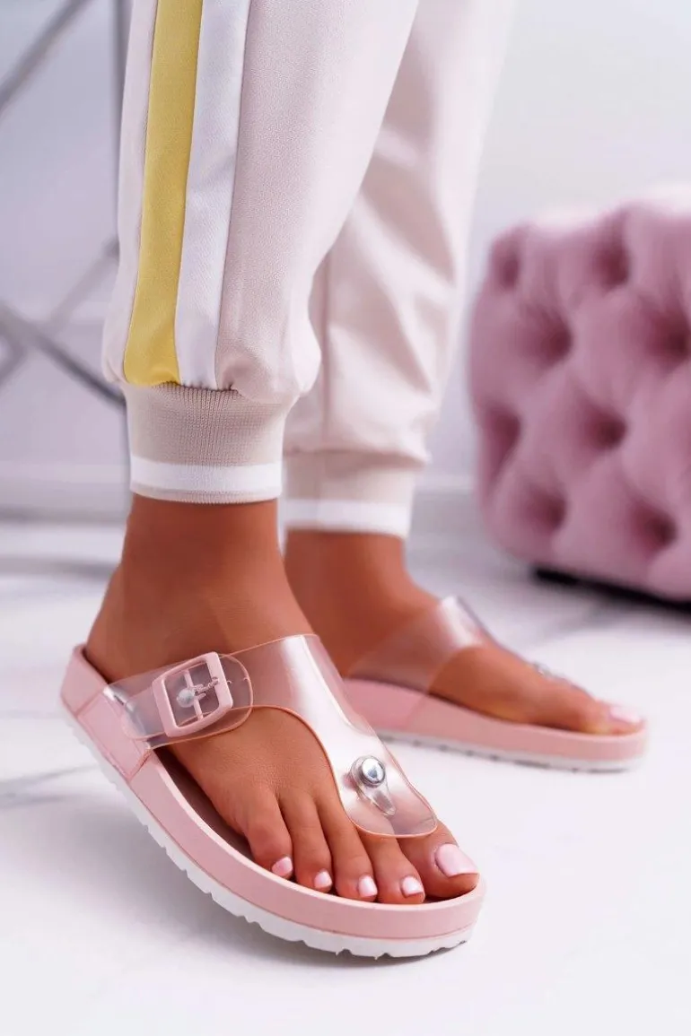 Klapki Damskie Japonki Transparentny Pasek Różowe Framona