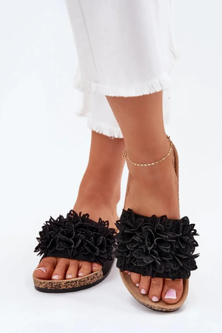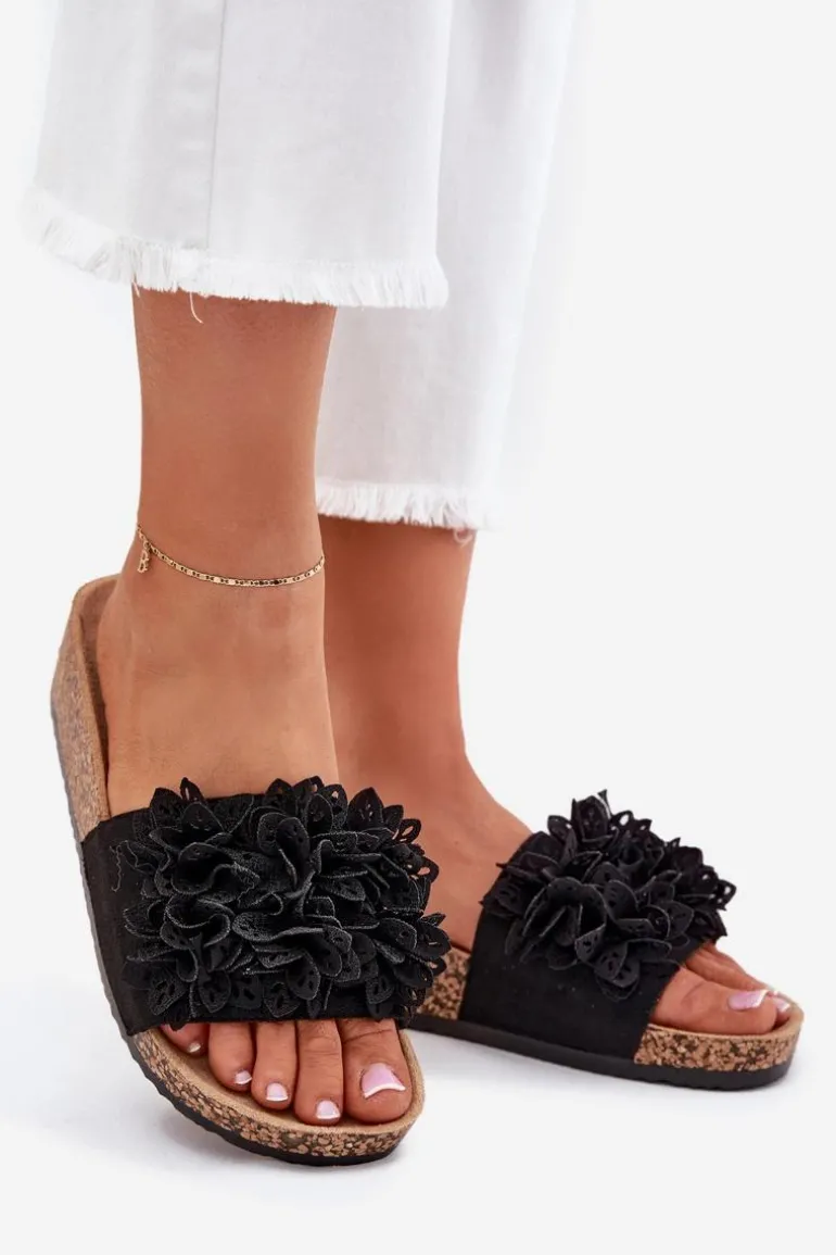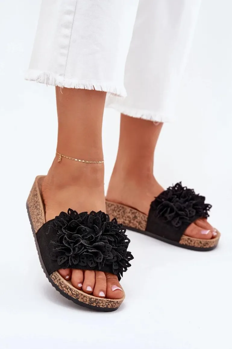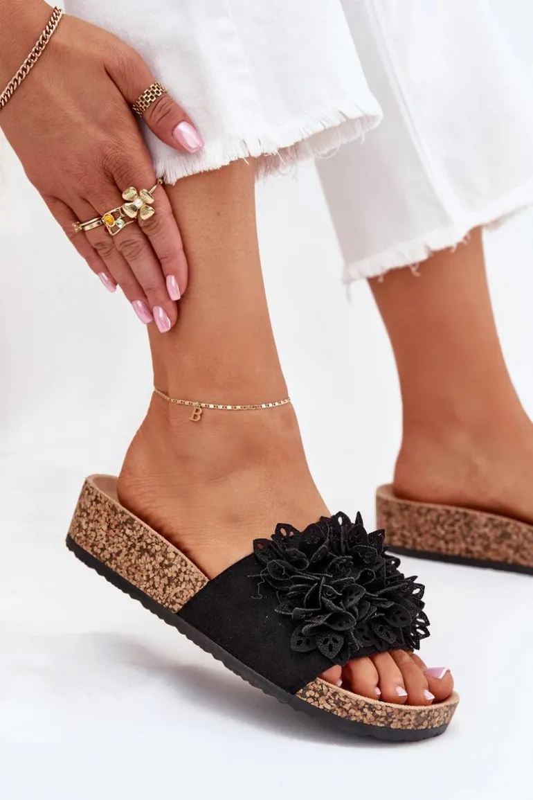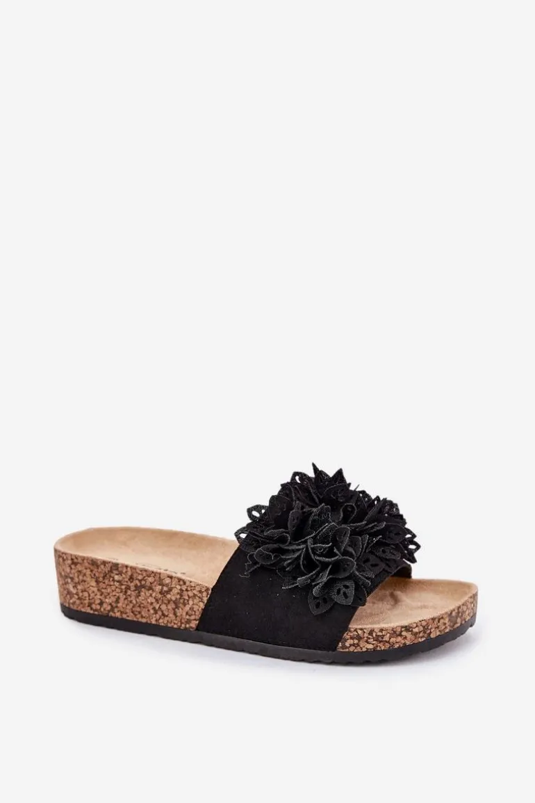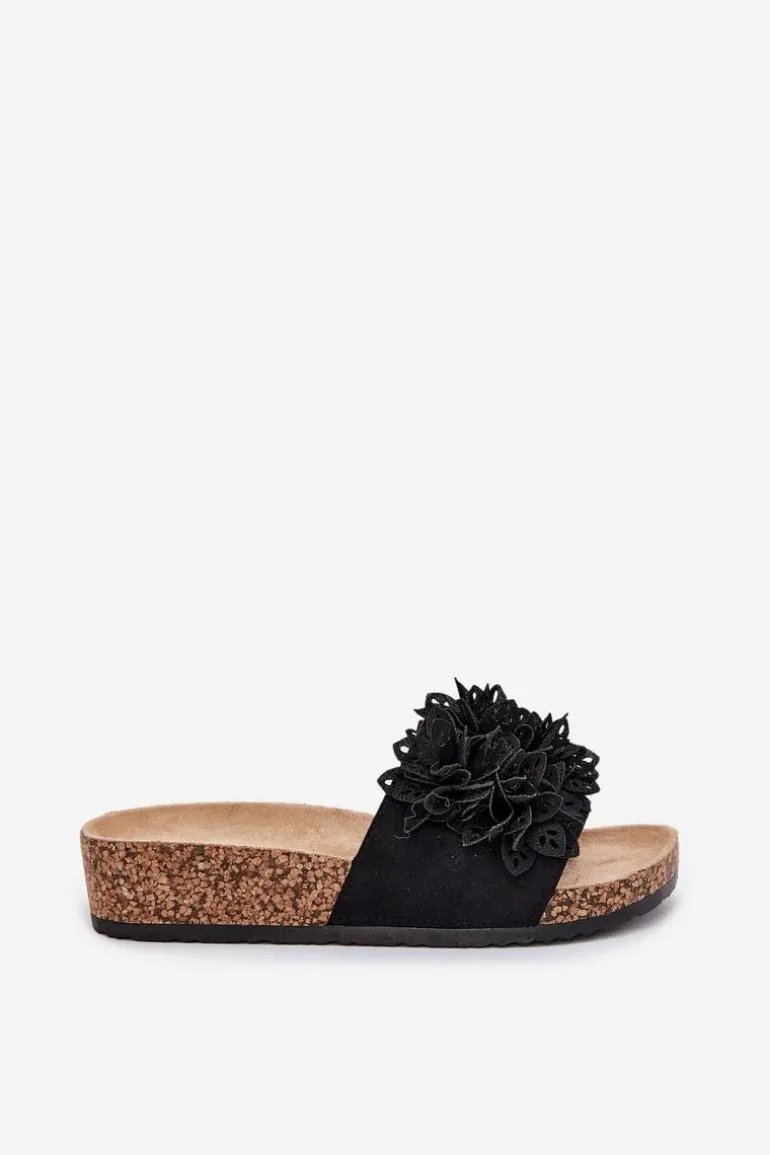 Klapki na korkowej platformie to stylowa propozycja na co dzień. Dzięki profilowanej wkładce zapewniają komfort przez cały dzień. Ozdobione materiałowymi kwiatkami na pasku, dodają uroku. Doskonałe do sukienek oraz spodni, łączą wygodę z modnym wyglądem, idealne na letnie dni. Przy wyborze rozmiaru prosimy sugerować się tabelą rozmiarów.