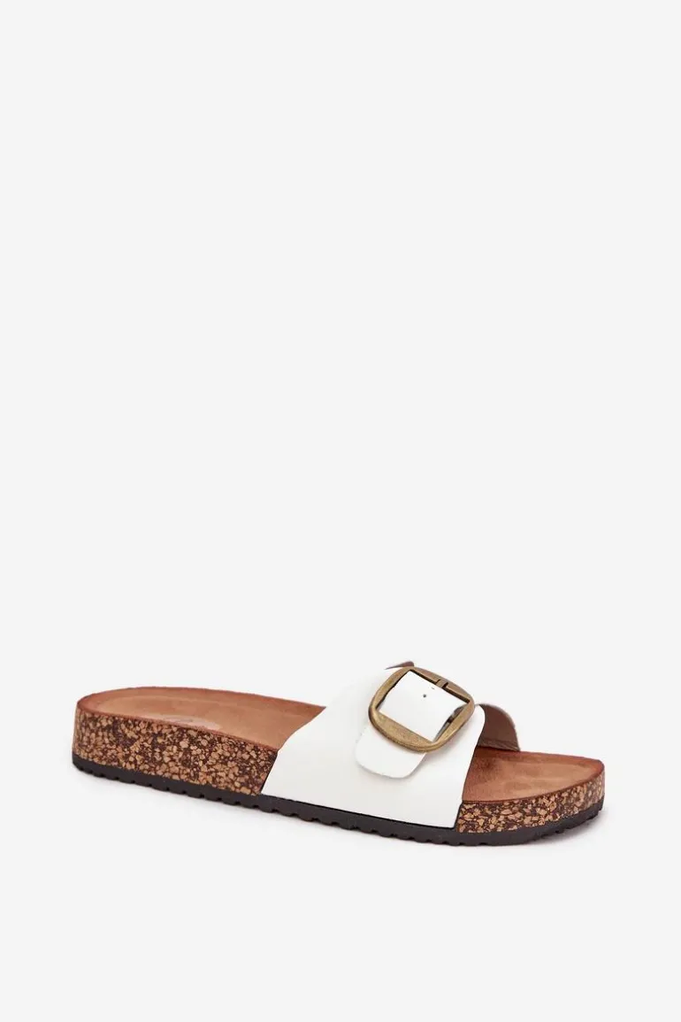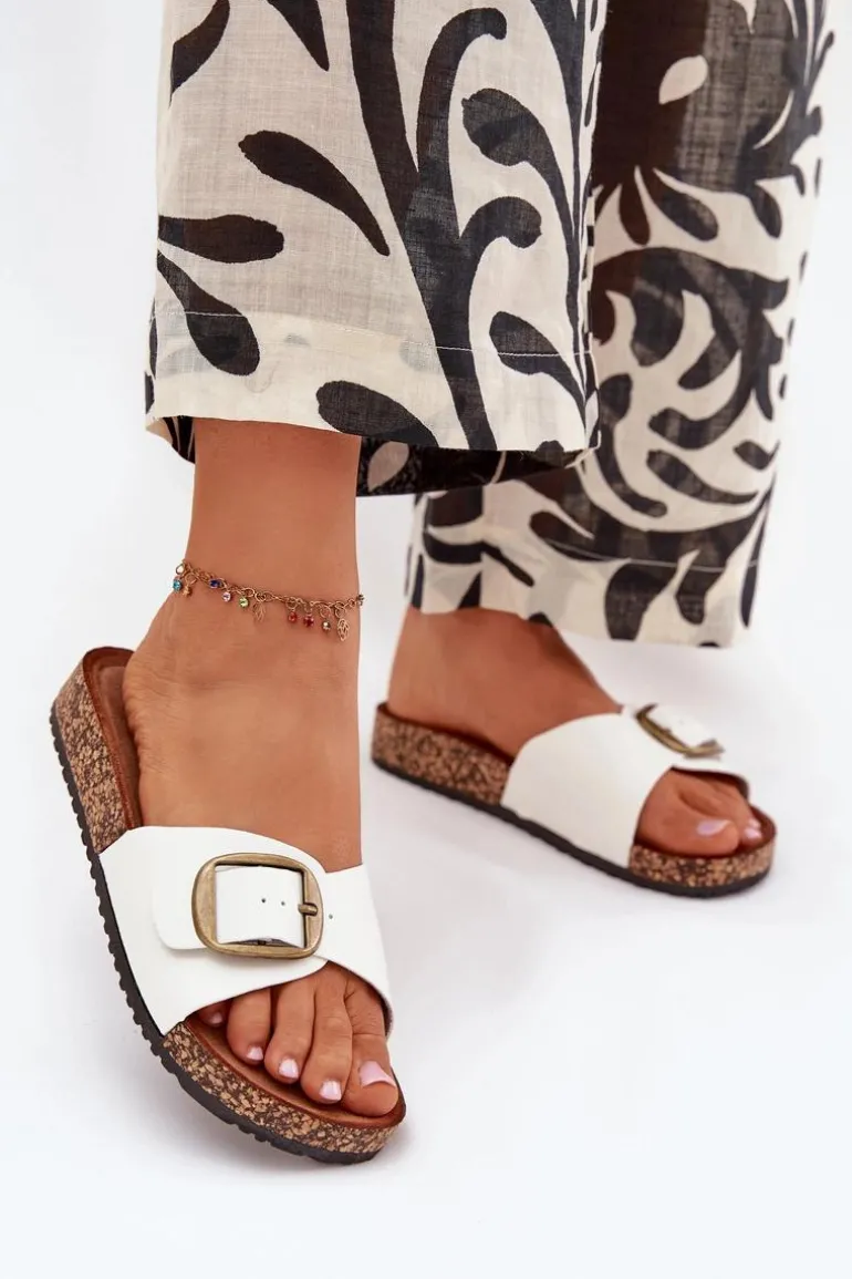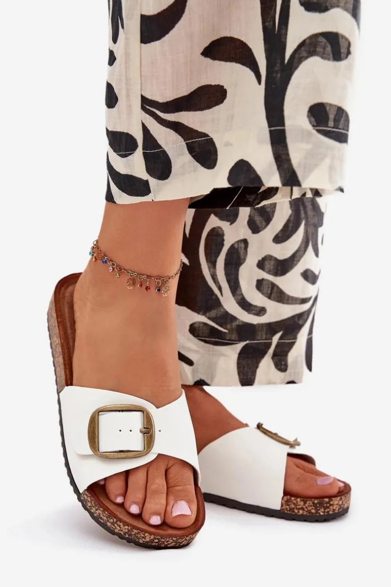 Klapki damskie z eko skóry, osadzone na korkowej platformie, to połączenie stylu i komfortu. Profilowana eko zamszowa wkładka zapewnia wygodę przez cały dzień, a regulowany pasek z klamrą umożliwia idealne dopasowanie do stopy. Doskonałe do codziennych stylizacji, świetnie komponują się z sukienkami, spódnicami czy spodniami. Przy wyborze rozmiaru rosimy sugerować się tabelą rozmiarów.