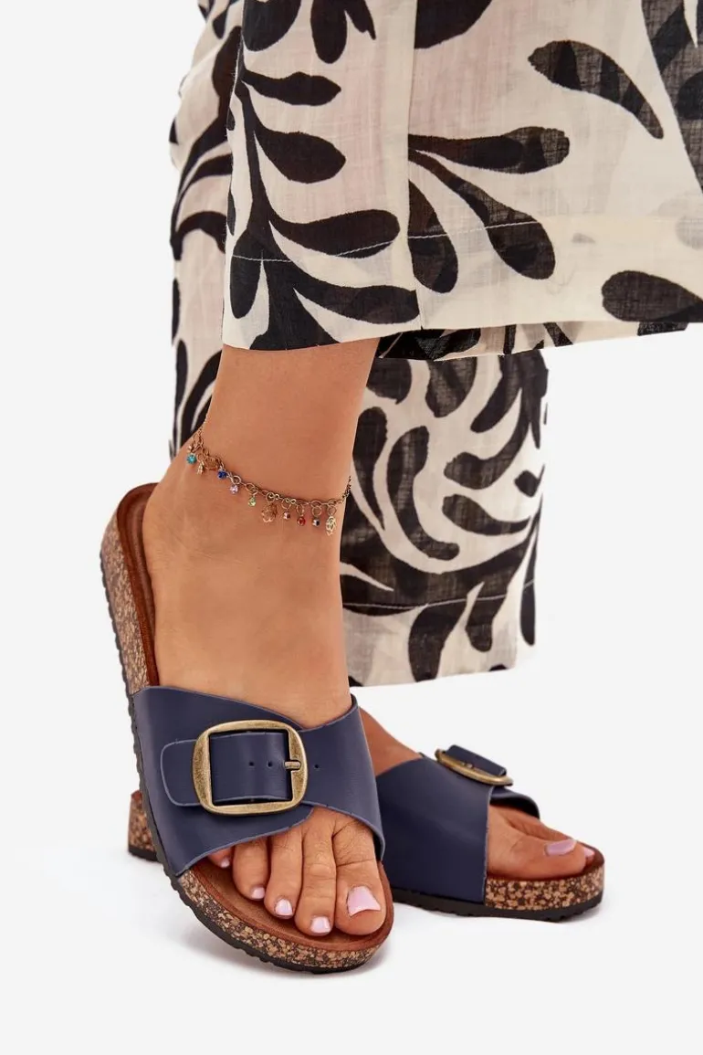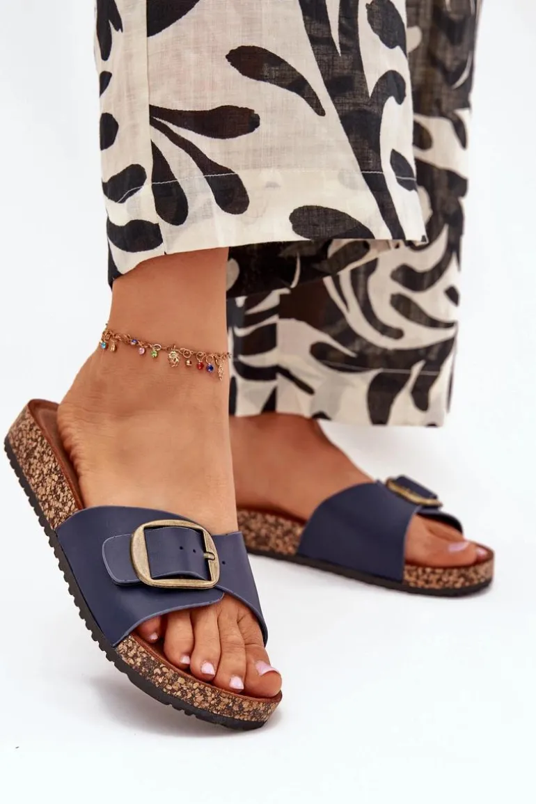 Klapki damskie z eko skóry, osadzone na korkowej platformie, to połączenie stylu i komfortu. Profilowana eko zamszowa wkładka zapewnia wygodę przez cały dzień, a regulowany pasek z klamrą umożliwia idealne dopasowanie do stopy. Doskonałe do codziennych stylizacji, świetnie komponują się z sukienkami, spódnicami czy spodniami. Przy wyborze rozmiaru rosimy sugerować się tabelą rozmiarów.