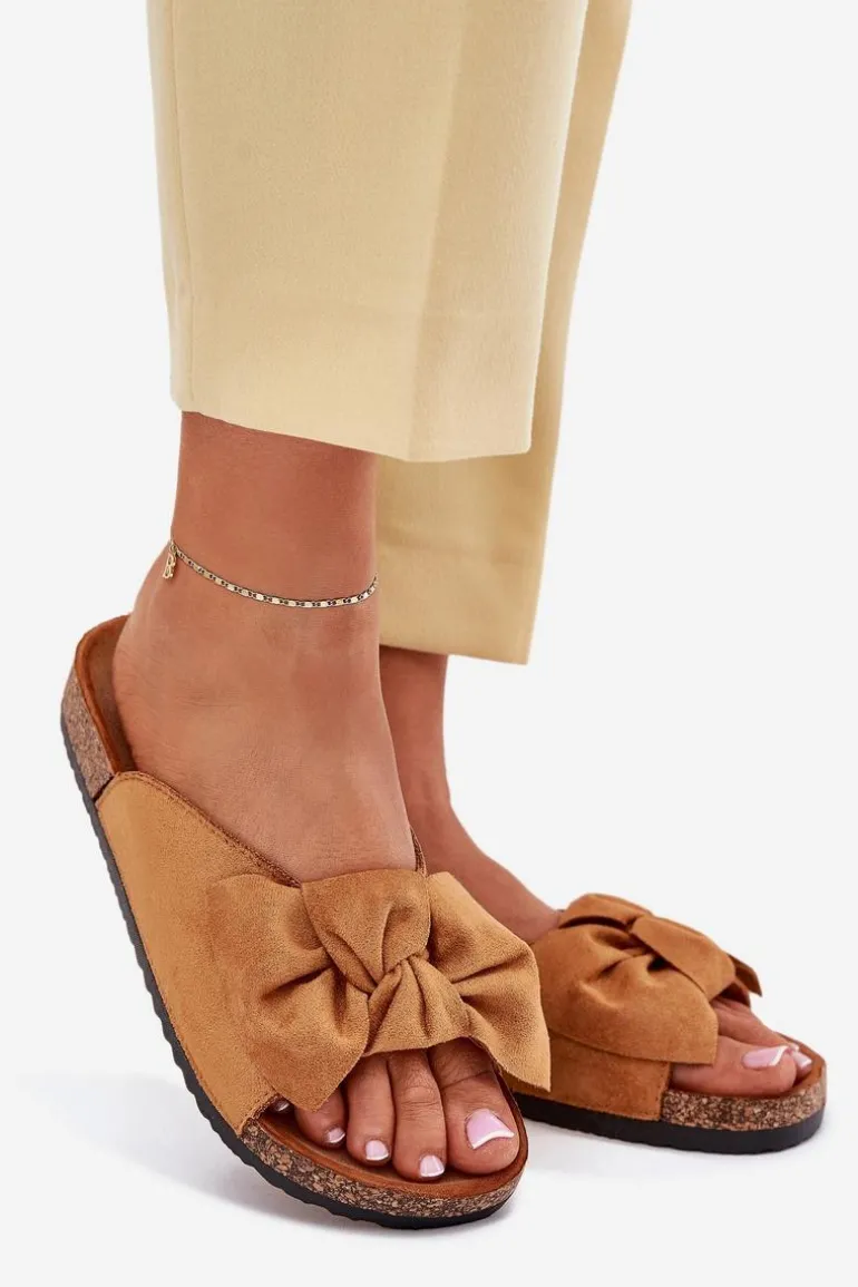 Klapki damskie z eko zamszu na korkowej podeszwie to idealny wybór na ciepłe dni. Wygodna, profilowana wkładka zapewnia komfort przez cały dzień, a kokardka z przodu dodaje uroku. Klasyczny fason, który doskonale sprawdzi się w codziennych stylizacjach. Przy wyborze rozmiaru rosimy sugerować się tabelą rozmiarów.
