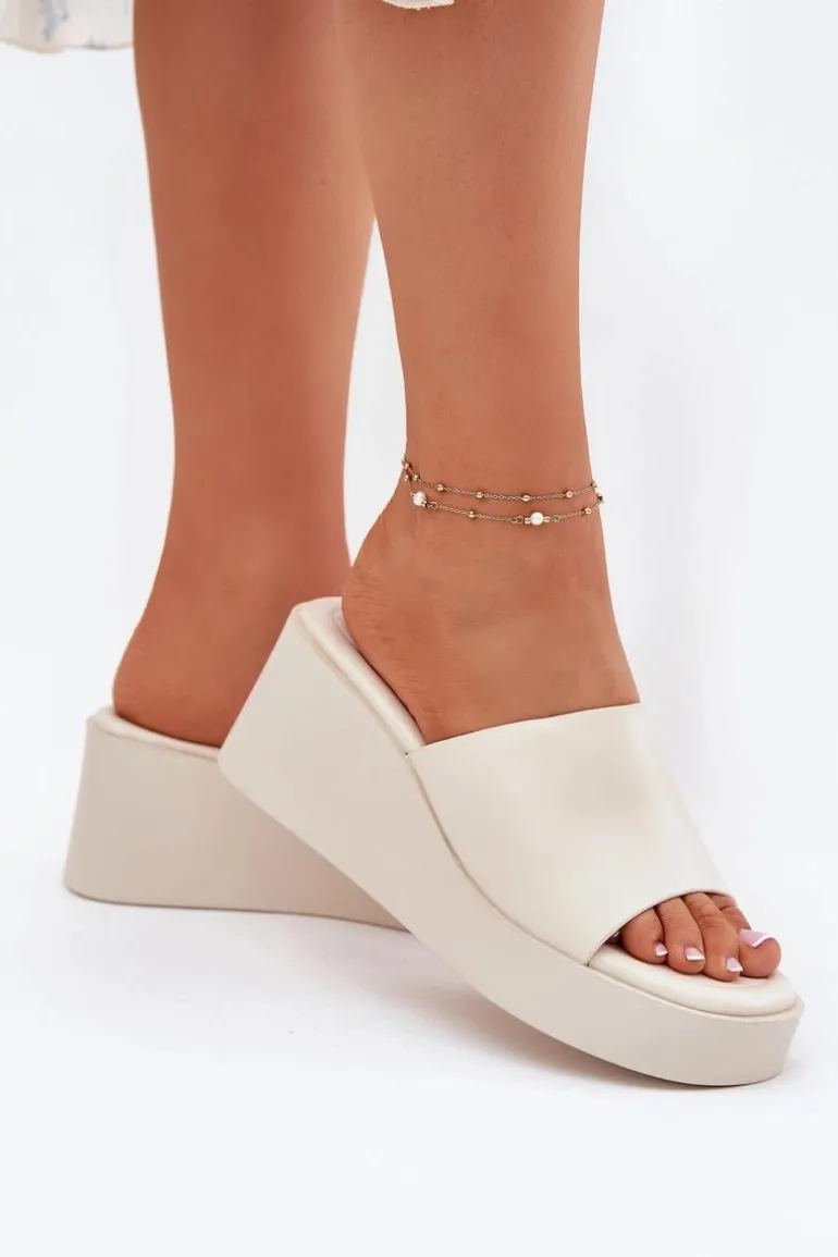 Damskie klapki wykonane z eko skóry. Osadzone na koturnie. Miękka wkładka zapewnia komfort noszenia przez cały dzień, niezależnie od okazji. Klapki świetnie sprawdzą się zarówno w zestawieniu z letnią sukienką, jak i z materiałowymi spodniami, dodając stylu każdej stylizacji. Idealne na co dzień oraz na wyjścia ze znajomymi! Przy wyborze rozmiaru prosimy kierować się tabelą rozmiarów.