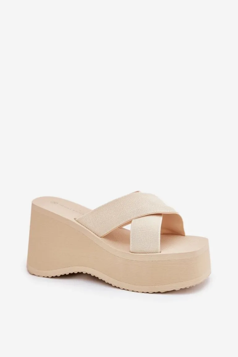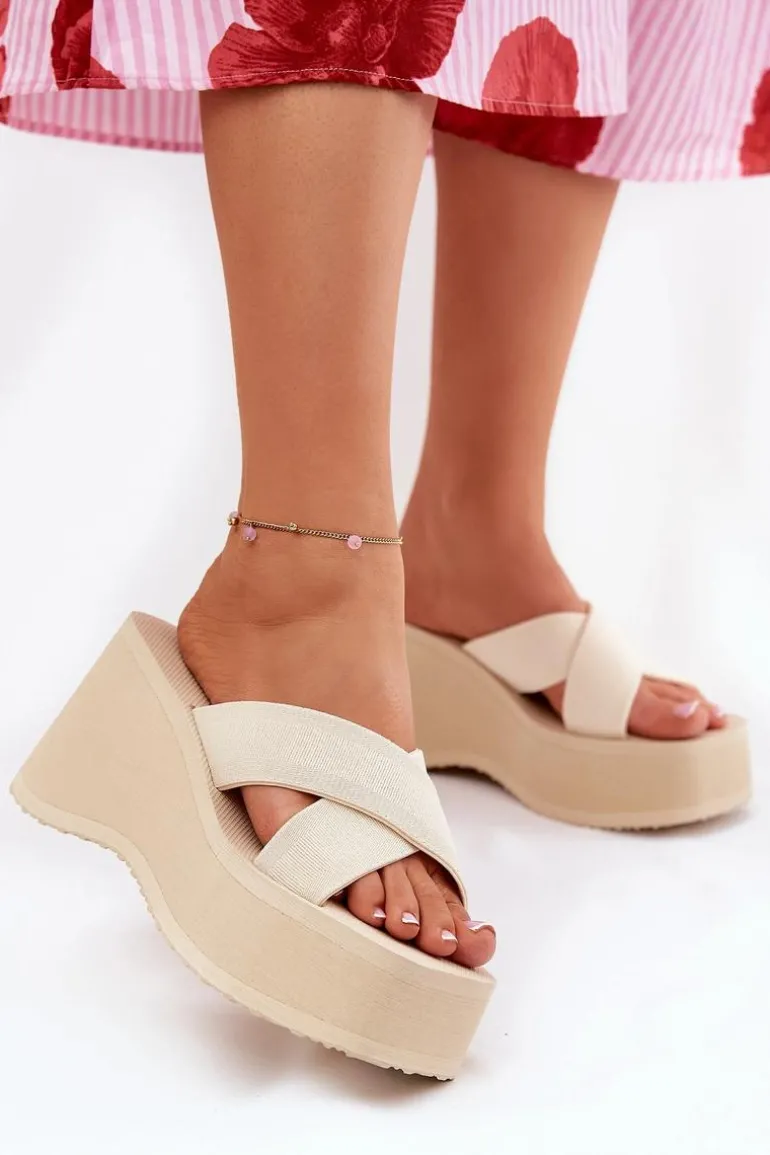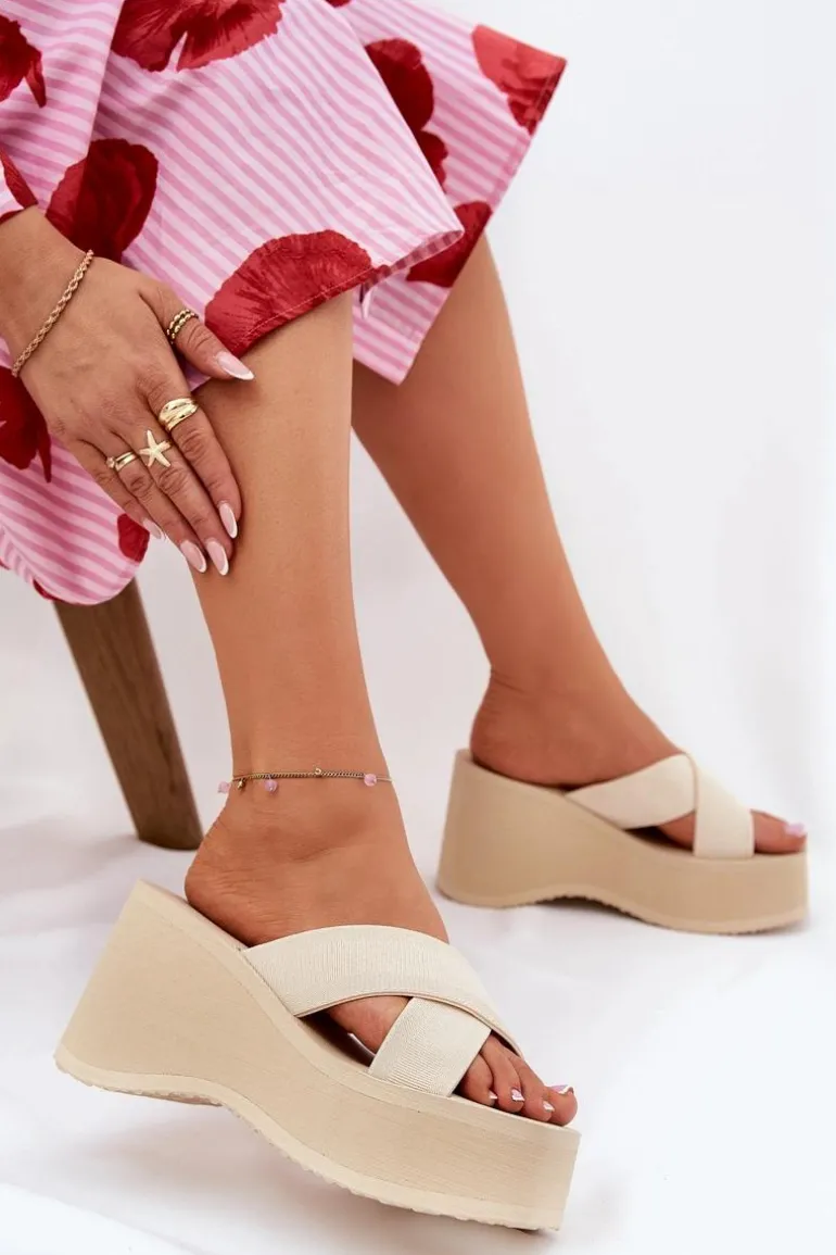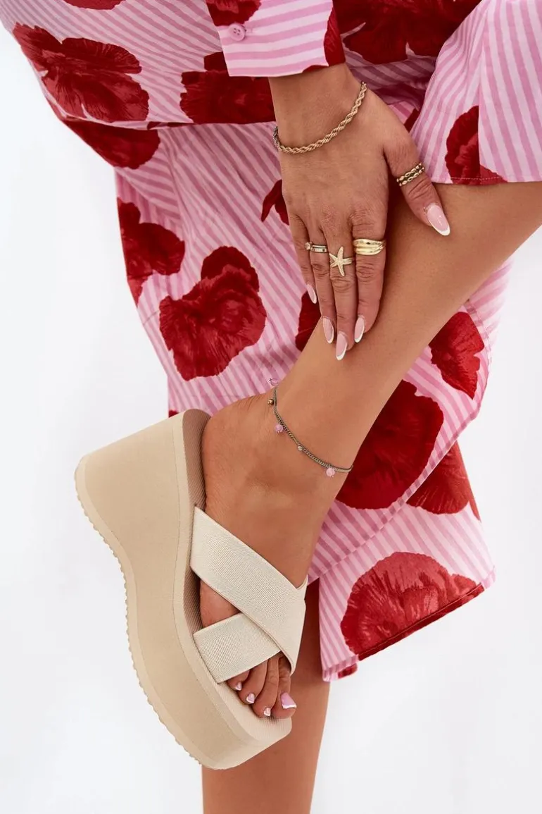 Lekkie klapki damskie na platformie i koturnie, które łączą komfort z modnym wyglądem. Wierzch butów wykonany z materiału tekstylnego, co zapewnia przewiewność i wygodę. Idealne na wakacyjne wyjazdy, doskonale pasują do letnich sukienek, spódnic czy szortów, dodając każdej stylizacji lekkości i stylowego charakteru. Przy wyborze rozmiaru prosimy sugerować się tabelą rozmiarów.