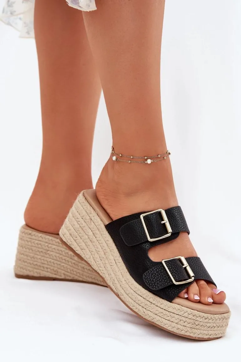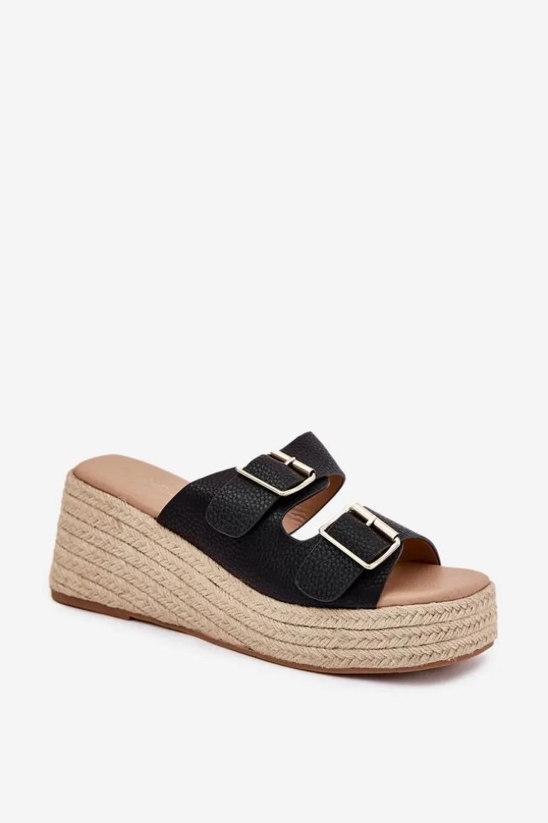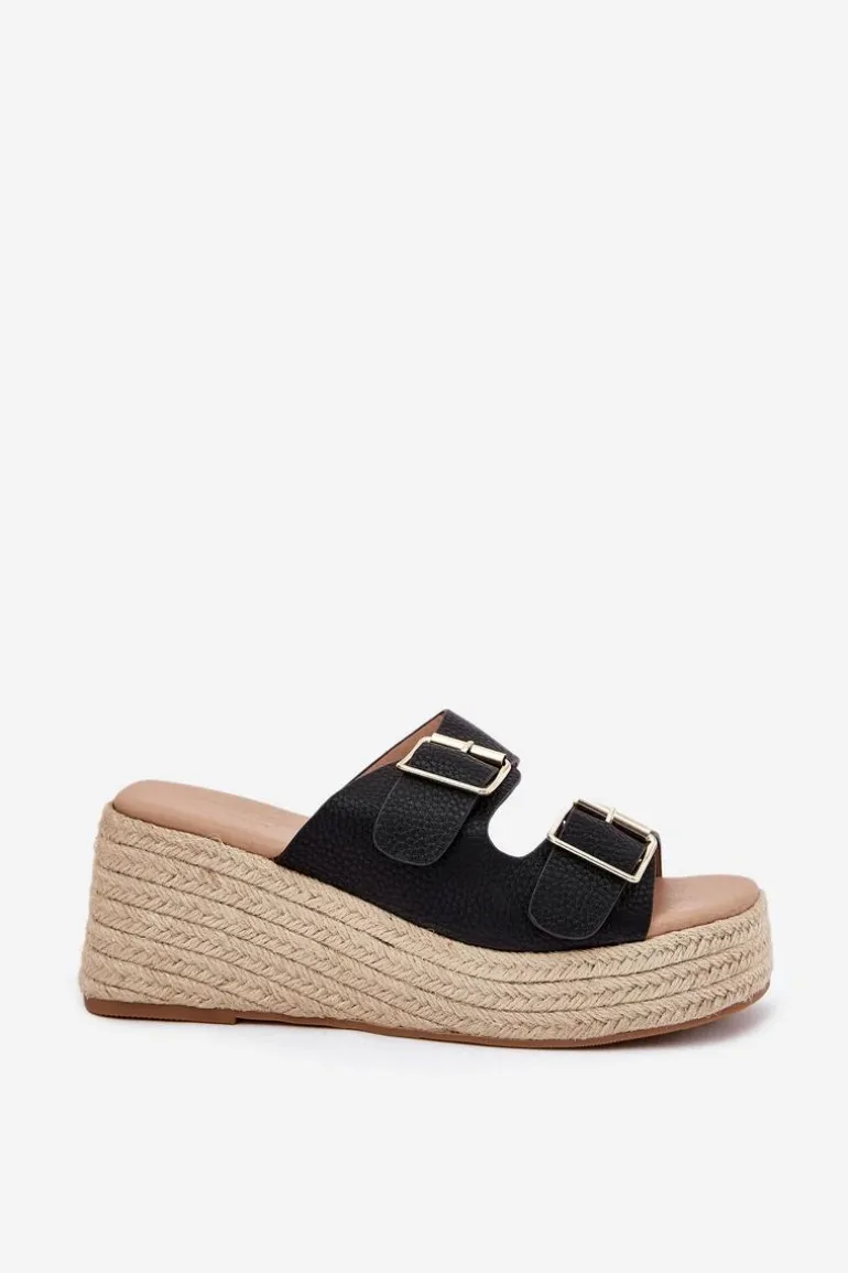 Klapki damskie z eko skóry to propozycja dla kobiet ceniących wygodę i styl. Osadzone na koturnie z modnym akcentem w postaci plecionki, prezentują się wyjątkowo letnio. Przód zdobią paski z klamrami. Miękka wkładka dodatkowo podnosi komfort noszenia. To idealny model zarówno do zwiewnych sukienek, jak i casualowych spodni. Przy wyborze rozmiaru prosimy kierować się tabelą rozmiarów.