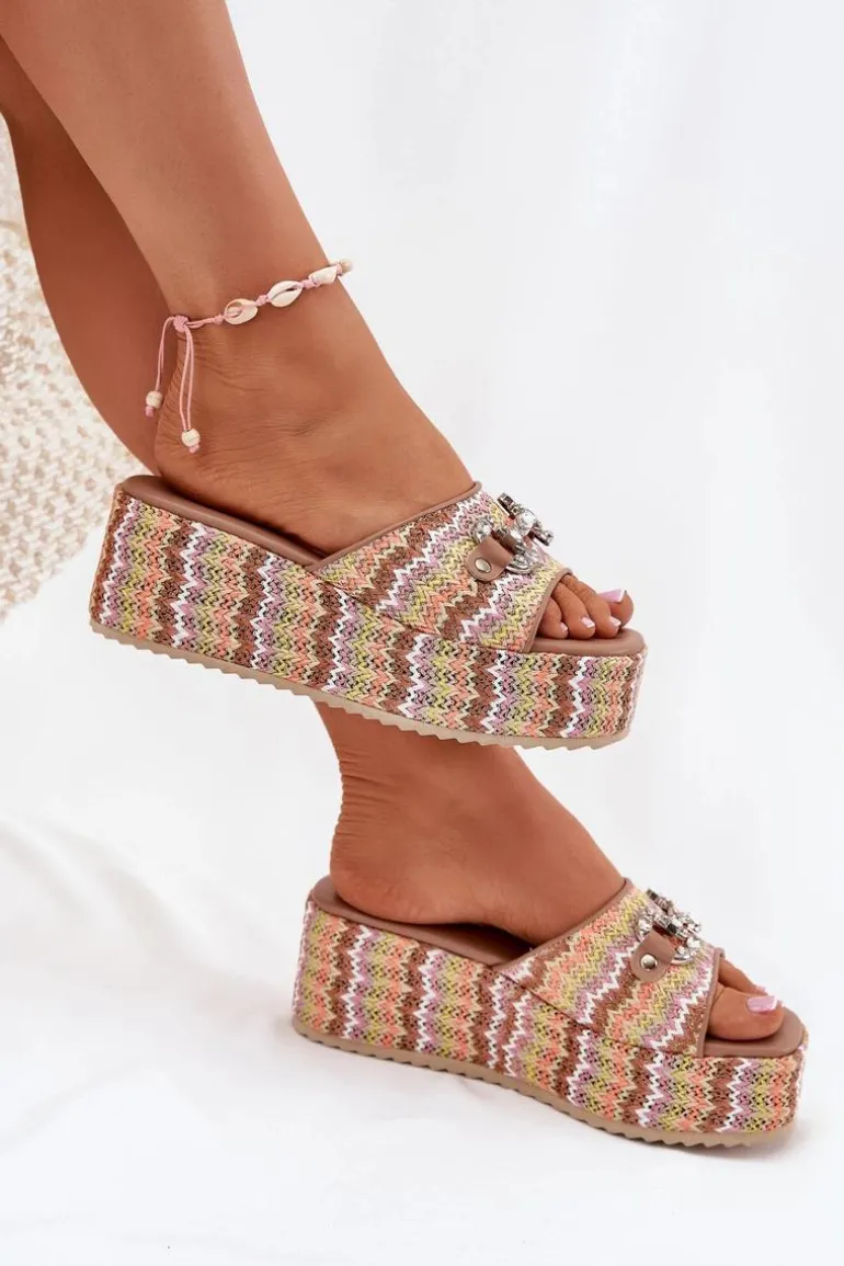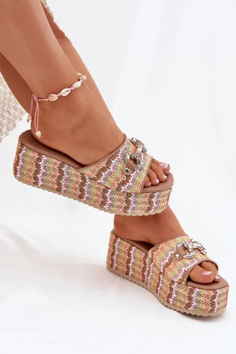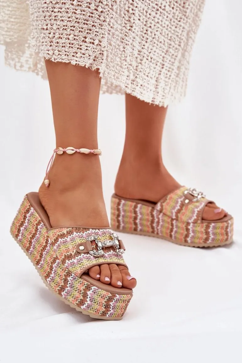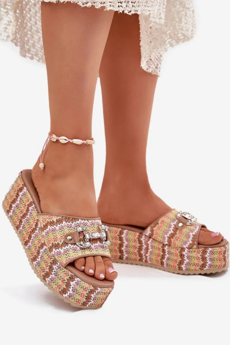 Klapki damskie z plecionką, osadzone na koturnie i platformie, to stylowa propozycja na letnie dni. Na pasku znajduje się subtelny ozdobny detal, który nadaje im wyjątkowego charakteru. Miękka wkładka zapewnia komfort noszenia przez cały dzień, a połączenie koturny i platformy gwarantuje wygodę i stabilność. Idealne do codziennych stylizacji. Przy wyborze rozmiaru prosimy kierować się tabelą rozmiarów.