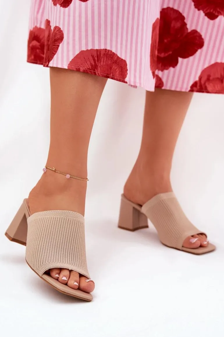 Klapki damskie wykonane z materiału tekstylnego. Osadzone na obcasie w formie słupka. Dzięki miękkiej wkładce będą idealnym wyborem na letnie spacery czy różne uroczystości. Modny wygląd sprawia, że świetnie komponują się z różnymi stylizacjami. Koniecznie powinnaś je mieć w swojej letniej szafie! Przy wyborze rozmiaru prosimy kierować się tabelą rozmiarów.