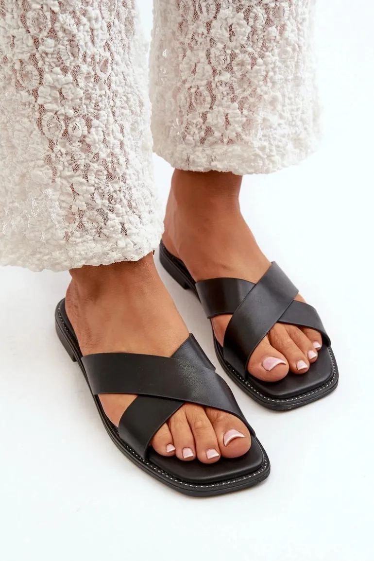 Klapki Damskie Na Płaskim Obcasie Z Eko Skóry S.Barski KV27-002 Czarne
