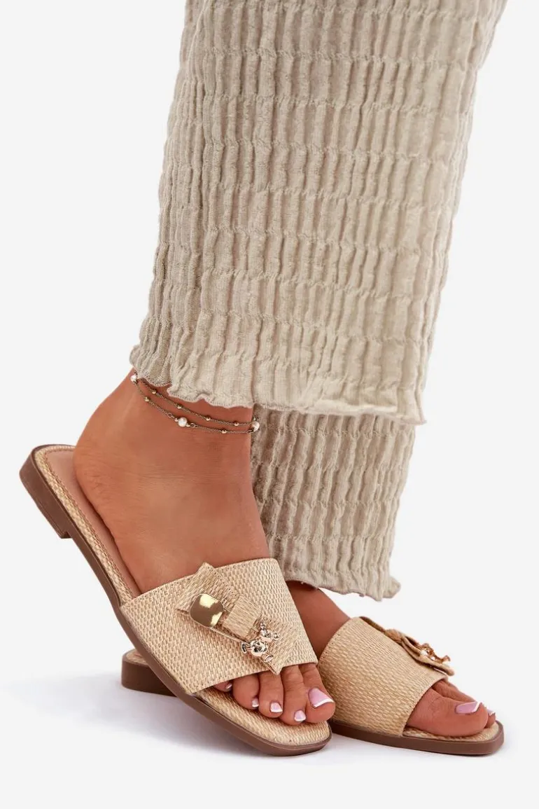 Klapki Damskie Na Płaskim Obcasie Z Kokardą Beżowe Sallariela