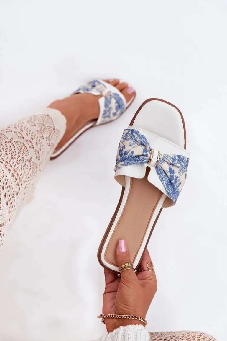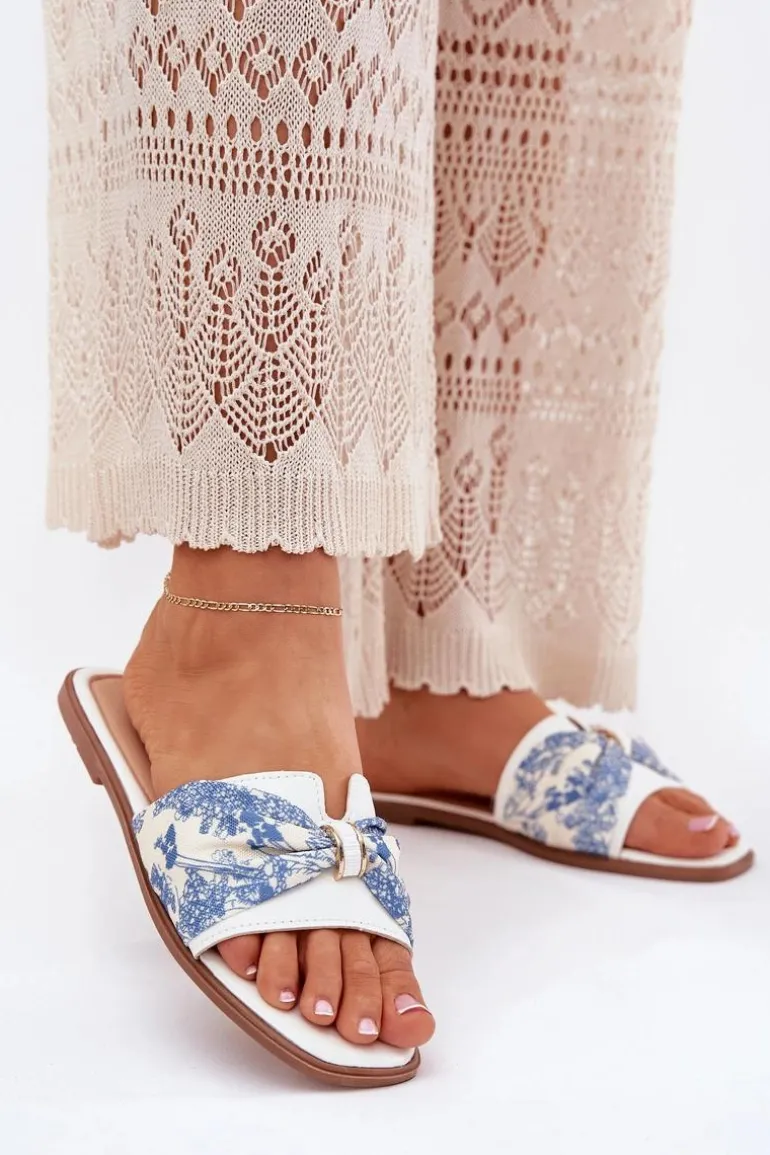 Klasyczne klapki damskie na płaskim obcasie, ozdobione uroczą kokardką z przodu, która dodaje im subtelnego uroku. Idealne do letnich sukienek, spódnic i szortów, doskonale uzupełnią każdą codzienną stylizację, zapewniając komfort i lekkość przez cały dzień. Przy wyborze rozmiaru prosimy sugerować się tabelą rozmiarów.