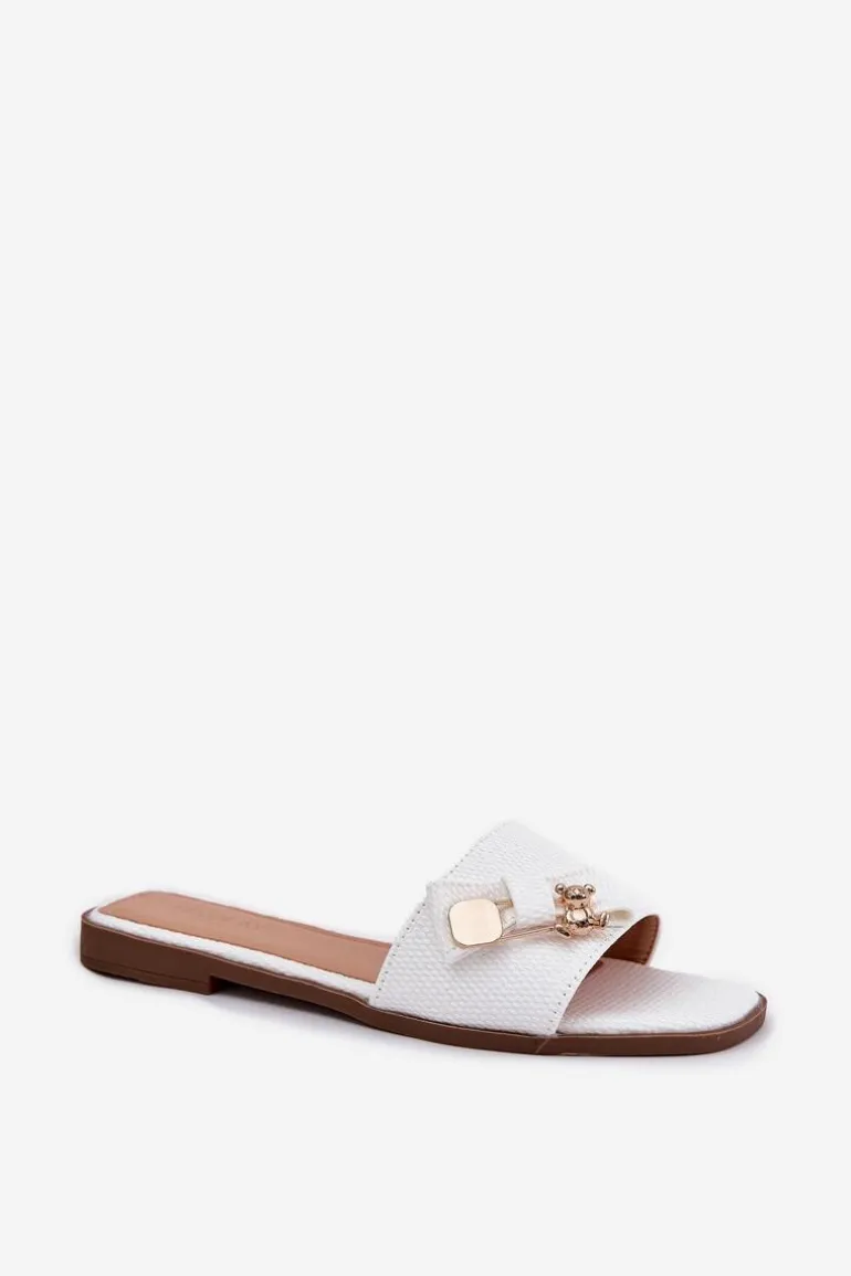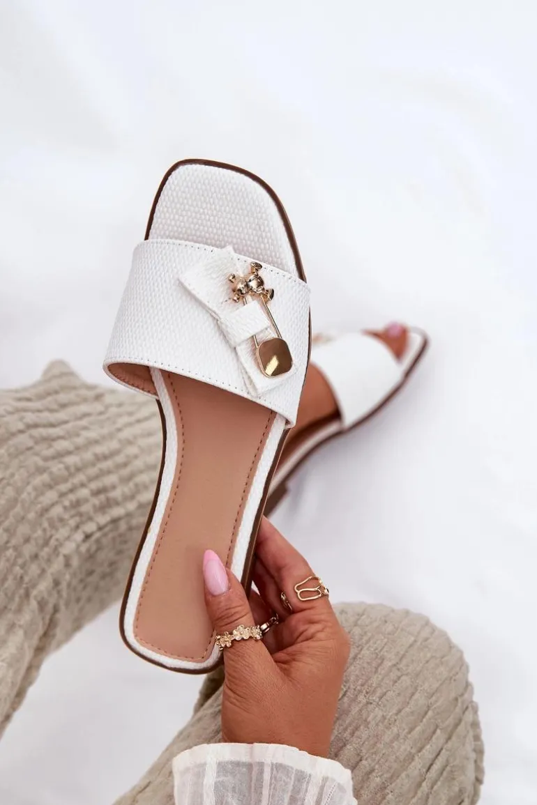 Klapki damskie na płaskim obcasie to połączenie wygody i stylu. Model ten wyróżnia się uroczą kokardką z ozdobną broszką, która dodaje stylowego akcentu. Idealne na co dzień, świetnie sprawdzą się zarówno do sukienek, jak i spodni, podkreślając kobiecy charakter każdej stylizacji. Przy wyborze rozmiaru prosimy sugerować się tabelą rozmiarów.