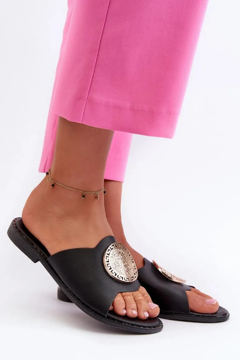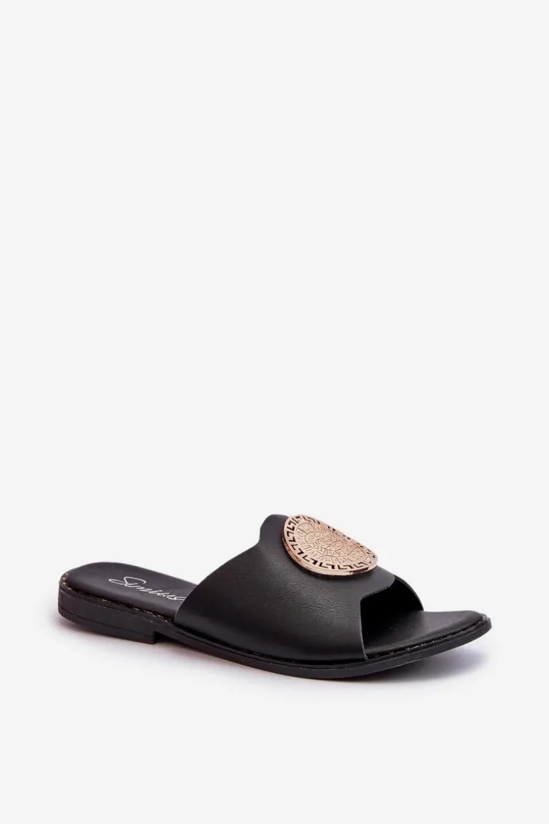 Eleganckie damskie klapki wykonane z eko skóry. Osadzone na płaskim obcasie, zapewniają wygodę i stabilność. Uroku dodaje ozdoba, która sprawia, że klapki są idealnym wyborem na letnie dni, zarówno na co dzień, jak i na bardziej formalne okazje. Przy wyborze rozmiaru prosimy sugerować się tabelą rozmiarów.