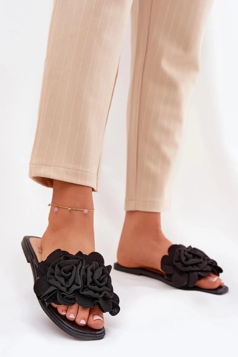 Stylowe klapki damskie wykonane z eko skóry, osadzone na płaskiej podeszwie, które łączą wygodę z delikatnym, kobiecym akcentem. Z przodu buty ozdobione są urokliwymi kwiatkami, które nadają im wyjątkowego charakteru. Idealne na ciepłe dni, te klapki doskonale komponują się z letnimi sukienkami, spódnicami czy szortami, wprowadzając do każdej stylizacji lekkość i świeżość. Przy wyborze rozmiaru prosimy sugerować się tabelą rozmiarów.