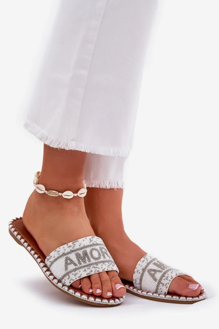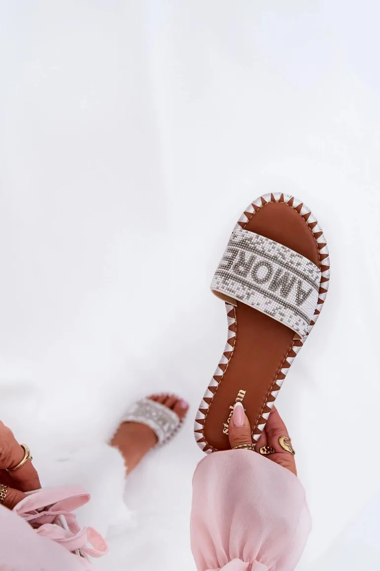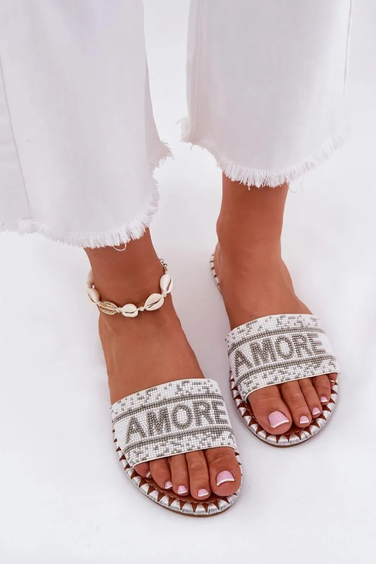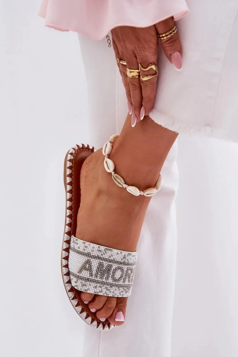 Damskie klapki na płaskim obcasie to doskonały wybór na upalne dni! Model ten posiada zdobiony pasek oraz efektowny napis Amore, który nadaje im wyjątkowego charakteru. Świetnie komponują się z różnymi stylizacjami, stanowiąc uniwersalny element garderoby. Koniecznie musisz je mieć! Przy wyborze rozmiaru prosimy sugerować się tabelą rozmiarów.