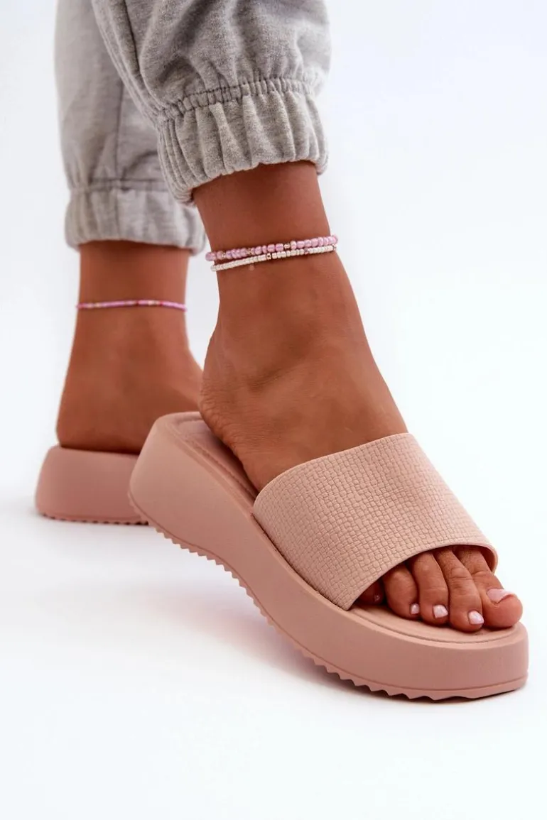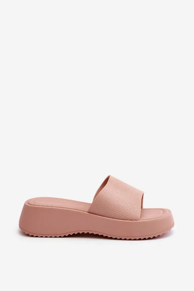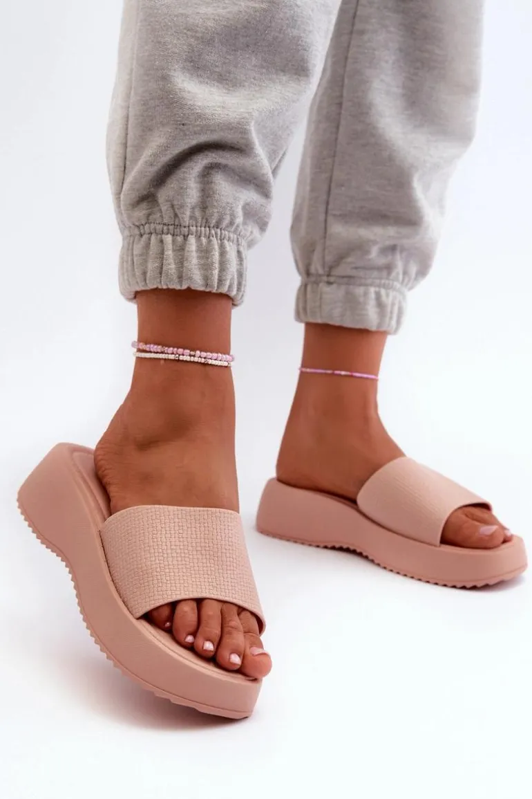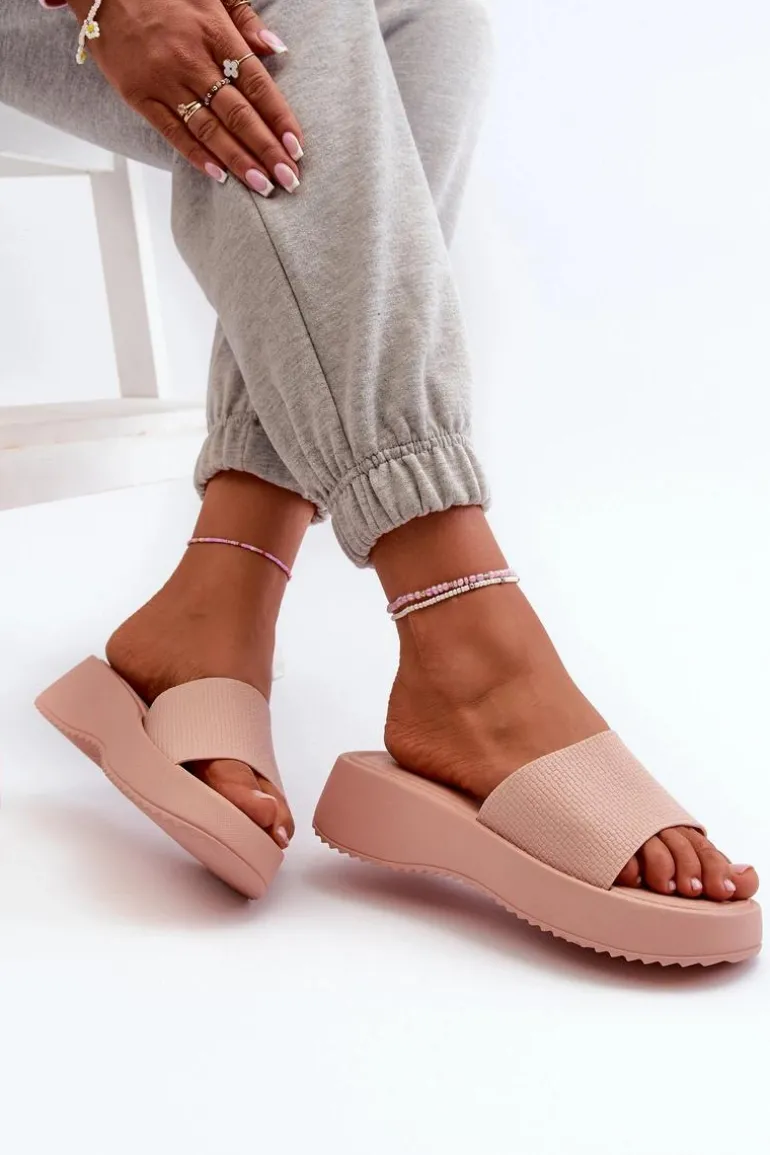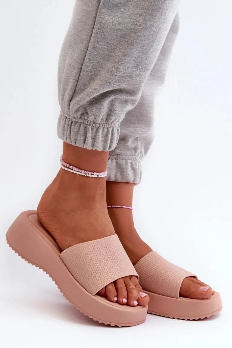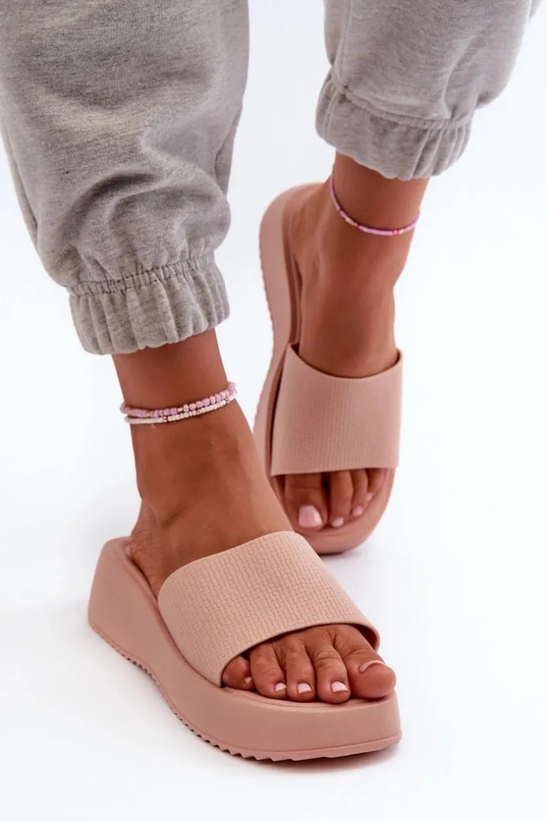 Klapki Damskie Na Platformie I Koturnie Różowe Vimarils