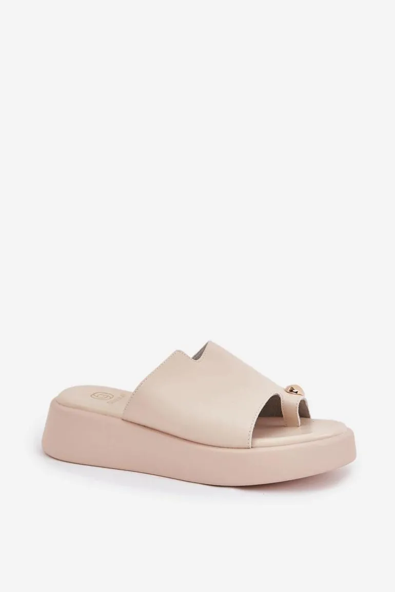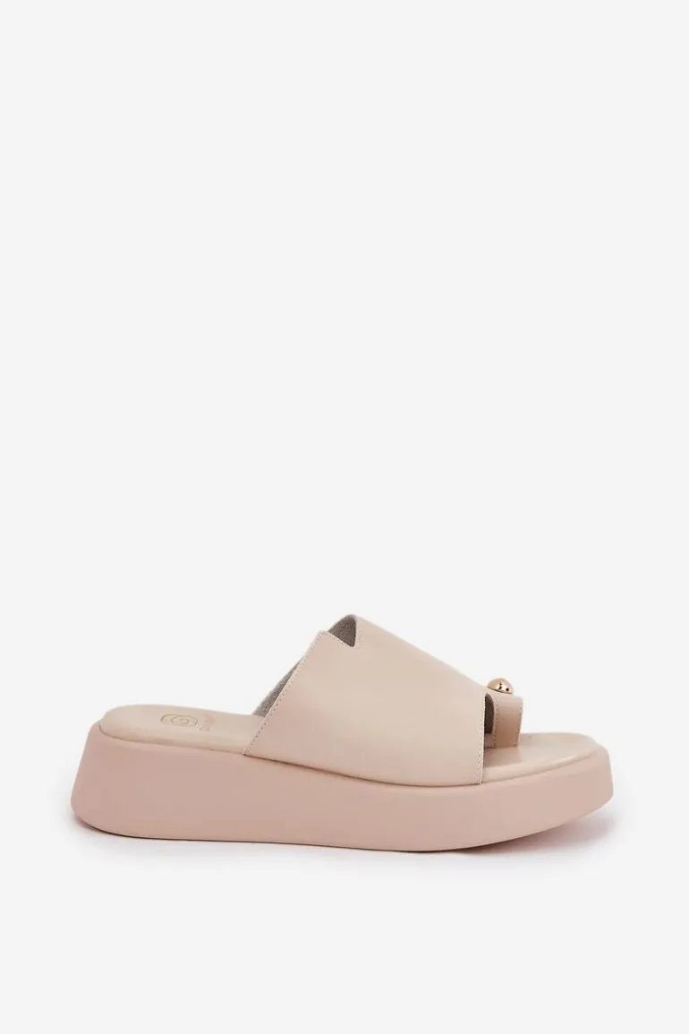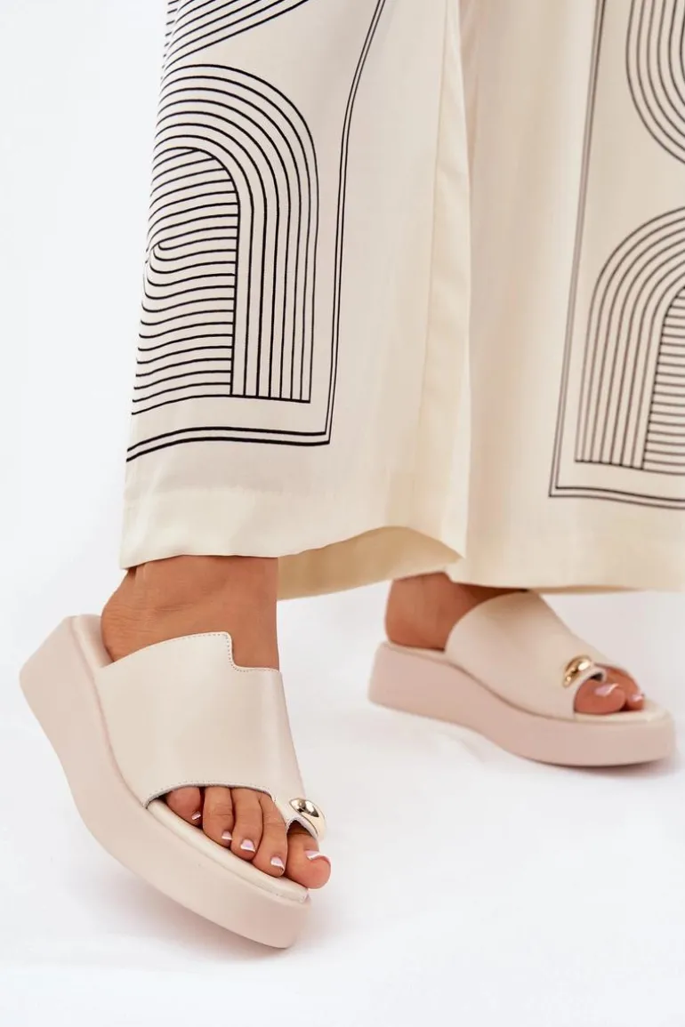 Stylowe klapki damskie z eko skóry. Osadzone na delikatnym koturnie i platformie. Miękka wkładka zapewnia wygodę przez cały dzień. Z przodu znajduje się subtelny, ozdobny detal, który dodaje wyjątkowego charakteru. Idealne na ciepłe dni, te klapki doskonale pasują do letnich sukienek, spódnic i spodni, wprowadzając lekkość do każdej stylizacji. Przy wyborze rozmiaru prosimy kierować się tabelą rozmiarów.