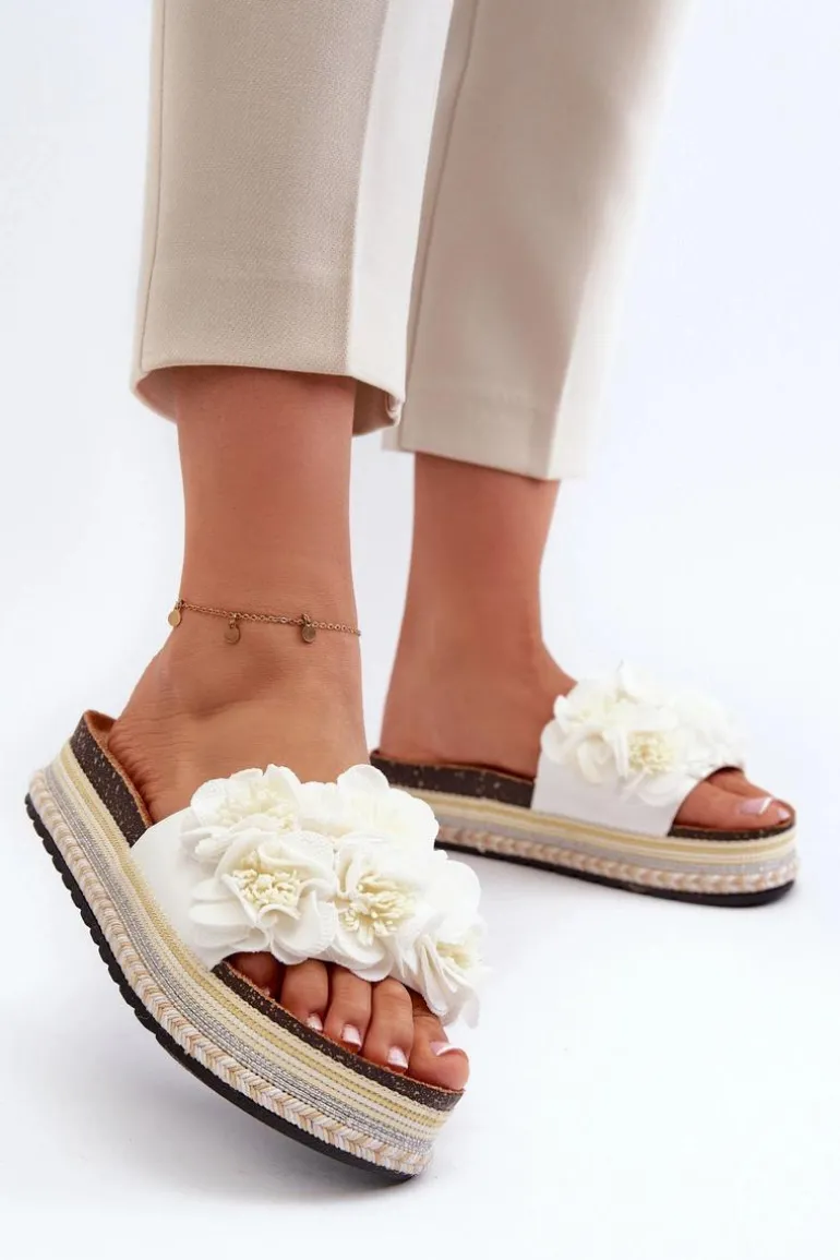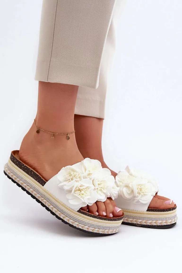 Damskie klapki na masywnej platformie to idealny wybór dla kobiet ceniących sobie modny wygląd i wygodę. Ten stylowy model przyciąga wzrok nie tylko swoją masywną platformą, ale również uroczymi kwiatkami, które zdobią przód obuwia. Idealne na letnie dni, te klapki są doskonałym dodatkiem do sukienek, spódnic, a także jeansów i szortów. Przy wyborze rozmiaru prosimy sugerować się tabelą rozmiarów.