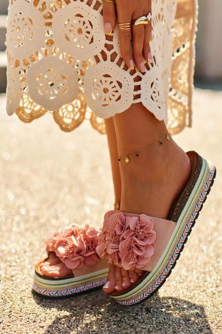 Damskie klapki na masywnej platformie to idealny wybór dla kobiet ceniących sobie modny wygląd i wygodę. Ten stylowy model przyciąga wzrok nie tylko swoją masywną platformą, ale również uroczymi kwiatkami, które zdobią przód obuwia. Idealne na letnie dni, te klapki są doskonałym dodatkiem do sukienek, spódnic, a także jeansów i szortów. Przy wyborze rozmiaru prosimy sugerować się tabelą rozmiarów.