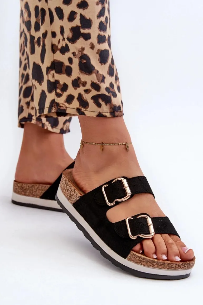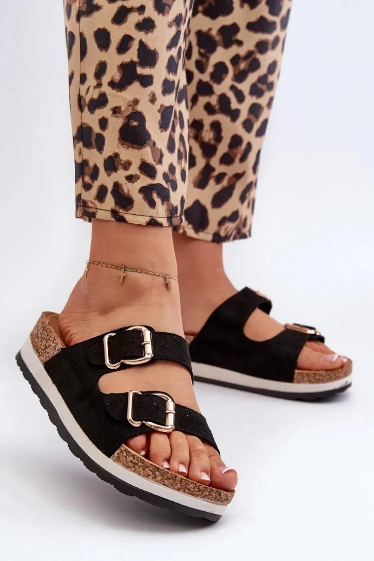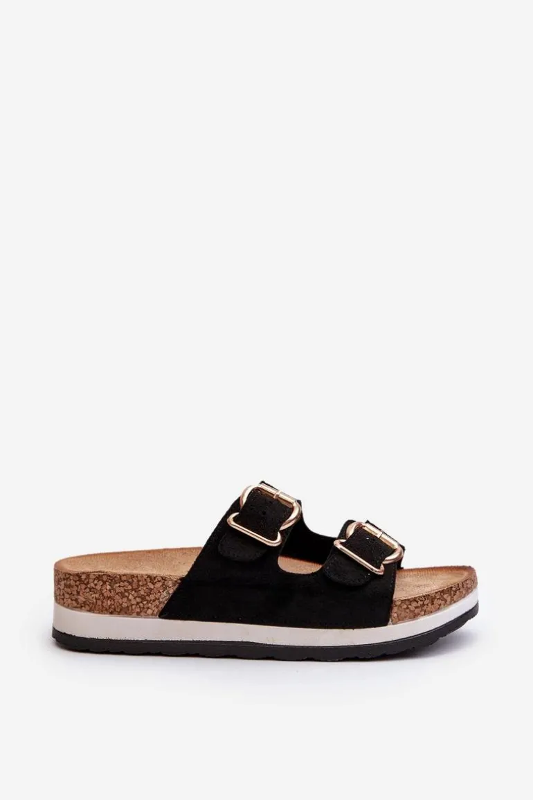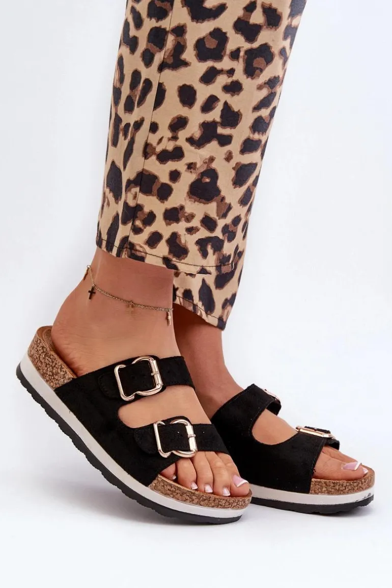 Klapki Damskie Na Platformie Z Klamrami Eko Zamszowe Czarne Ursila