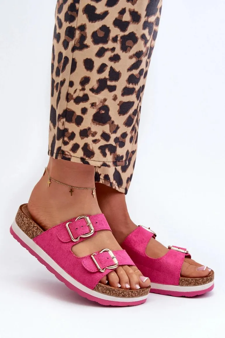Klapki damskie na platformie wykonane z eko zamszu to połączenie stylu i wygody. Dwa regulowane paski, zdobione złotymi klamrami, które nie tylko dodają elegancji, ale także umożliwiają łatwe dopasowanie do indywidualnych potrzeb. Profilowana wkładka zapewnia komfort i wsparcie dla stopy, co sprawia, że są idealne na długie spacery czy dni pełne aktywności. Przy wyborze rozmiaru rosimy sugerować się tabelą rozmiarów.