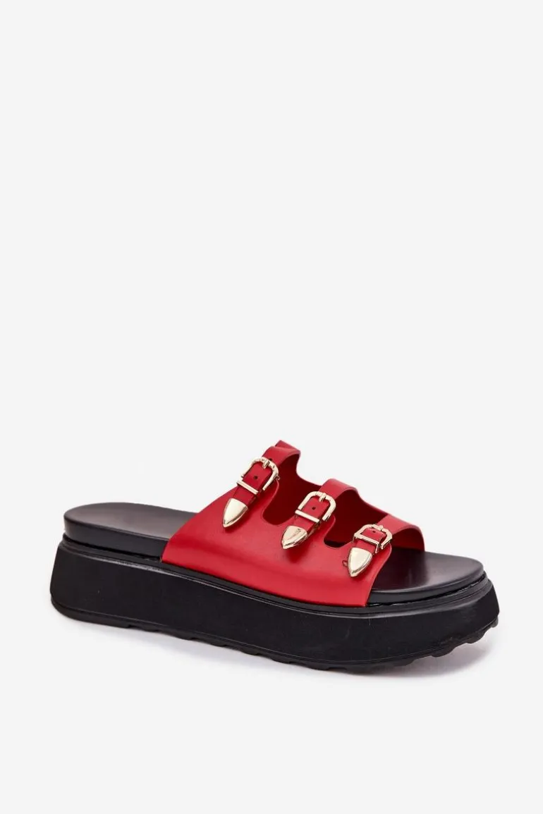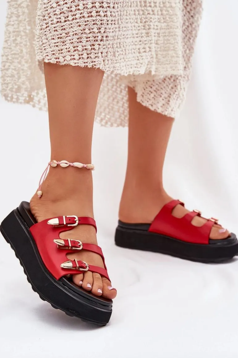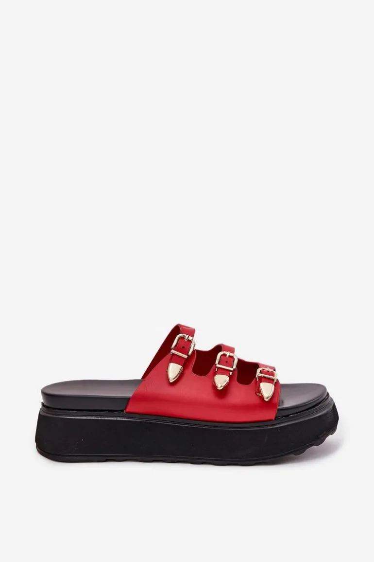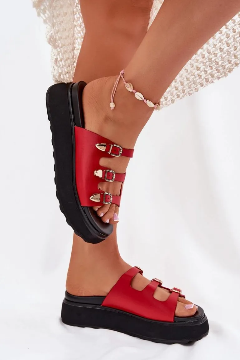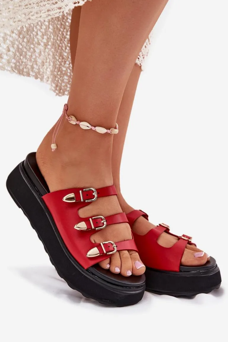 Klapki damskie z eko skóry, osadzone na platformie, to połączenie komfortu i stylu. Model wyróżnia się trzema cienkimi, regulowanymi paseczkami z klamrami, które pozwalają na idealne dopasowanie do stopy. Miękka wkładka zapewnia wygodę przez cały dzień, a nowoczesny design sprawia, że klapki doskonale komponują się z letnimi stylizacjami. Idealne na co dzień, łączą funkcjonalność z modnym wyglądem. Przy wyborze rozmiaru prosimy sugerować się tabelą rozmiarów.