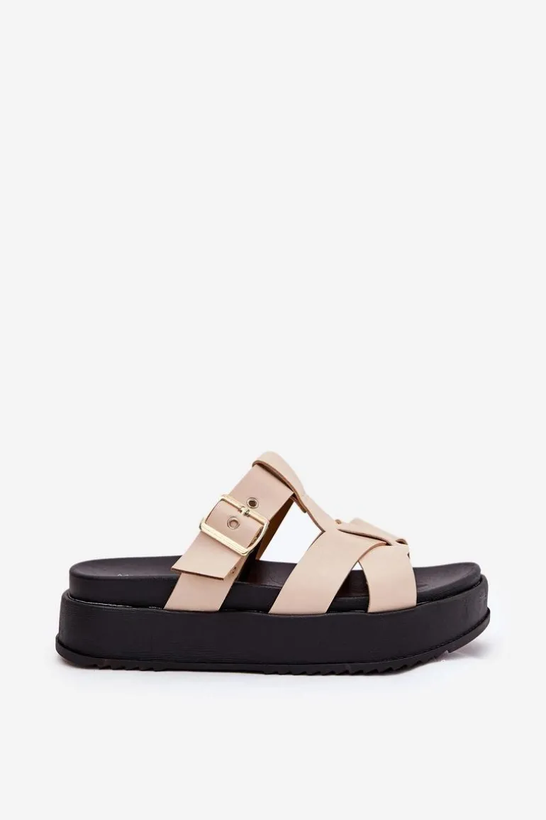 Klapki Damskie Na Platformie Z Paskami I Klamrą Beżowe Elimessa