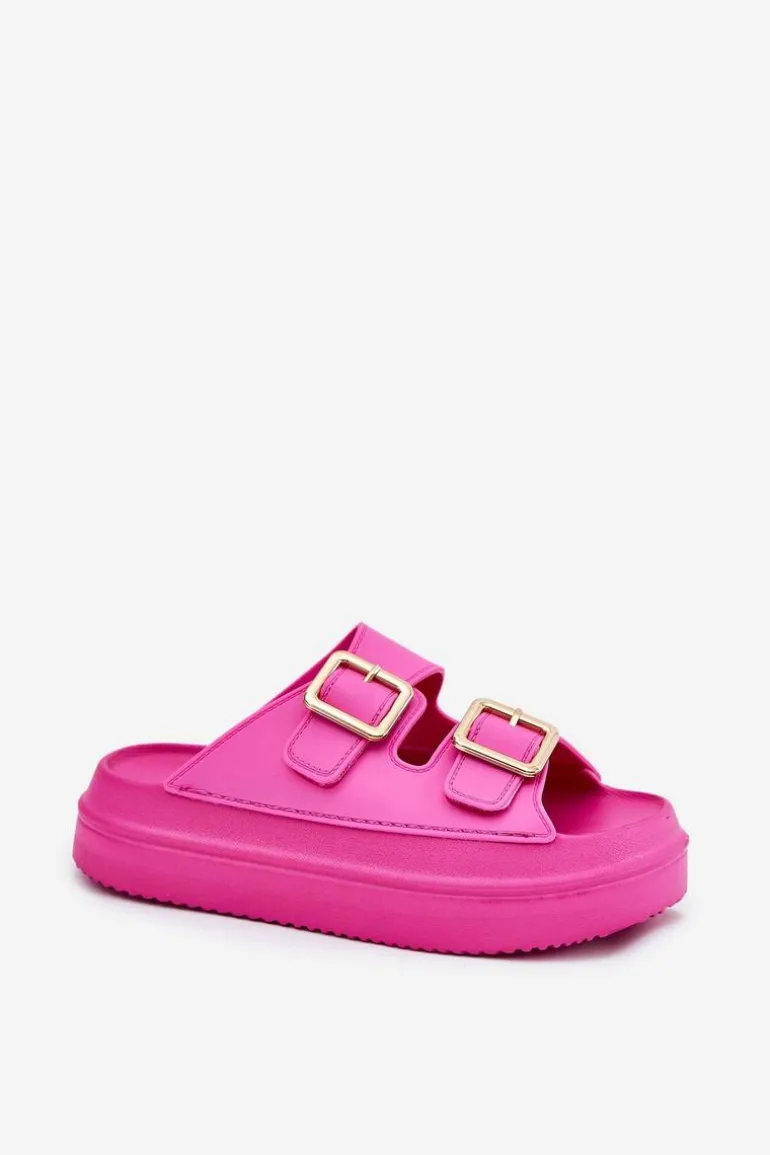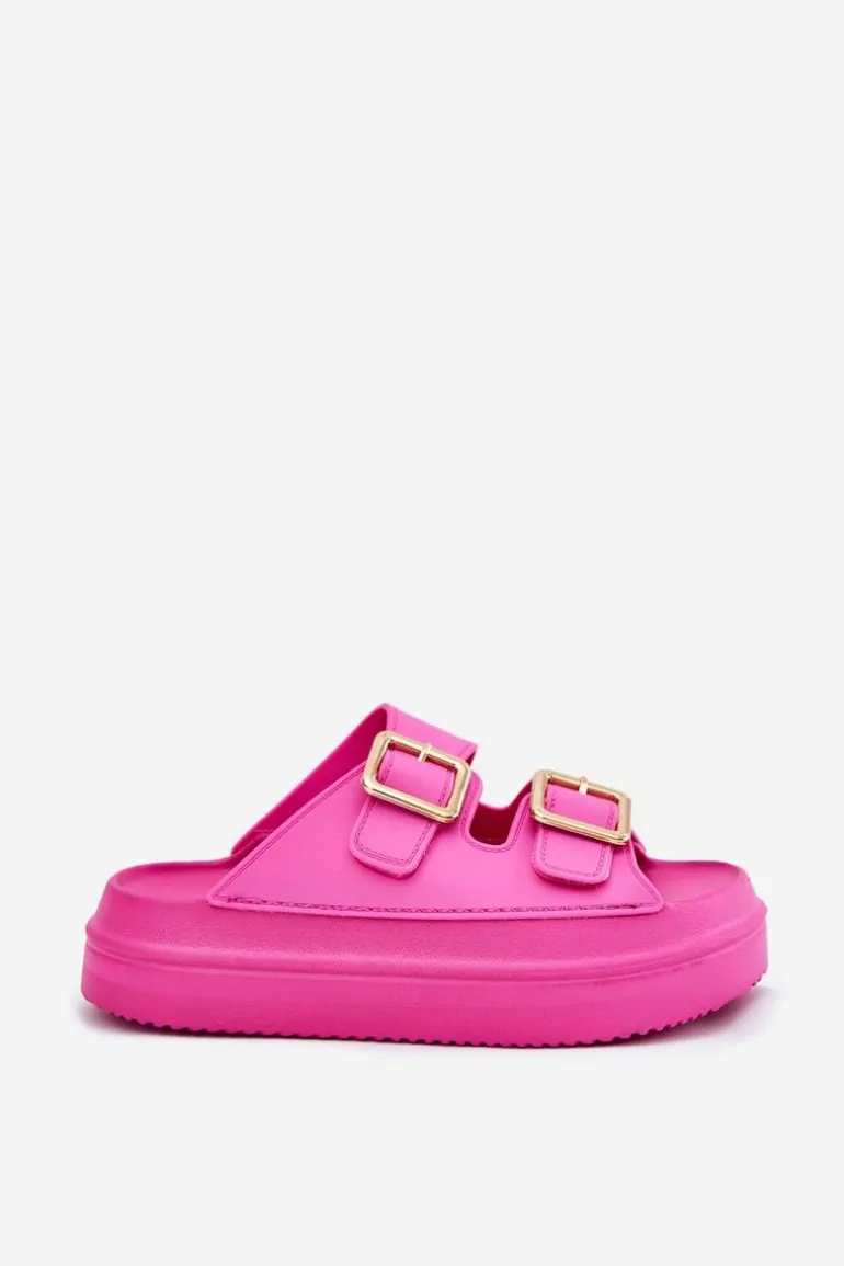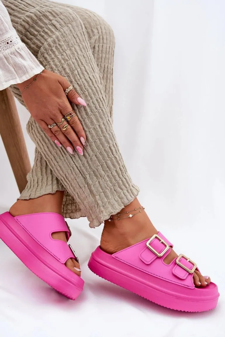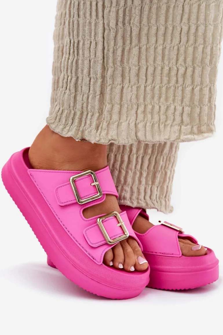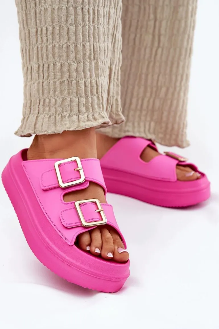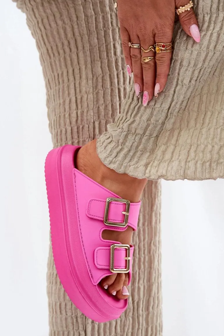 Klapki Damskie Na Platformie Ze Złotymi Klamrami Fuksja Zorila