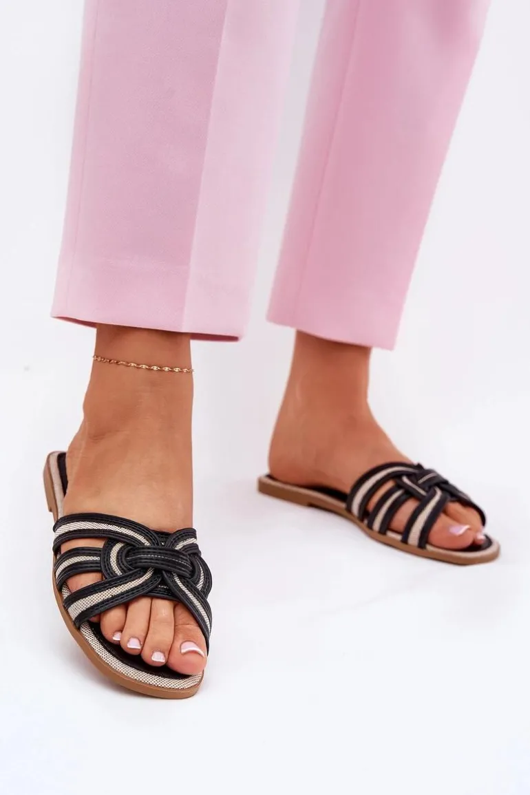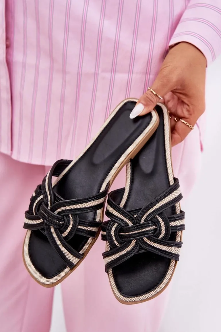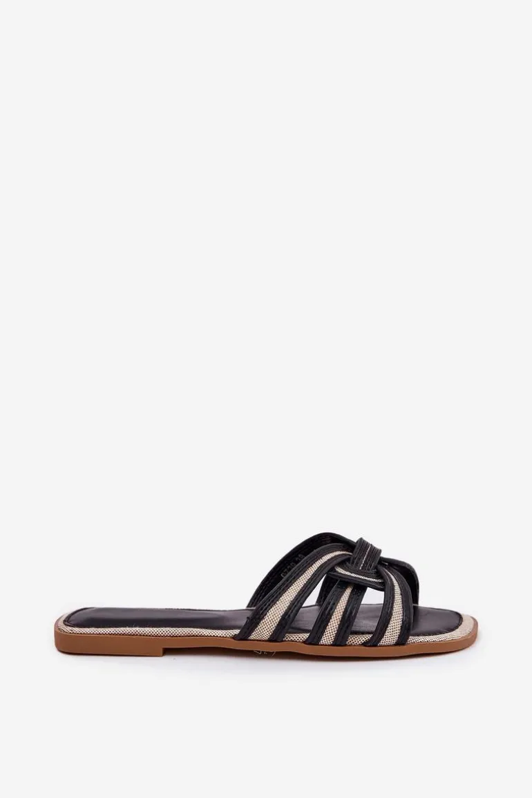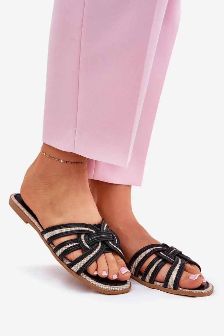 Klasyczne, płaskie klapki damskie wykonane z połączenia eko skóry i materiału tekstylnego, które łączą wygodę z subtelnym stylem. Przeplatające się paski z przodu nadają im lekkiego, nowoczesnego charakteru. Idealne do wielu letnich stylizacji, te klapki będą pasować zarówno do sukienek, jak i spodni czy szortów. Przy wyborze rozmiaru prosimy sugerować się tabelą rozmiarów.
