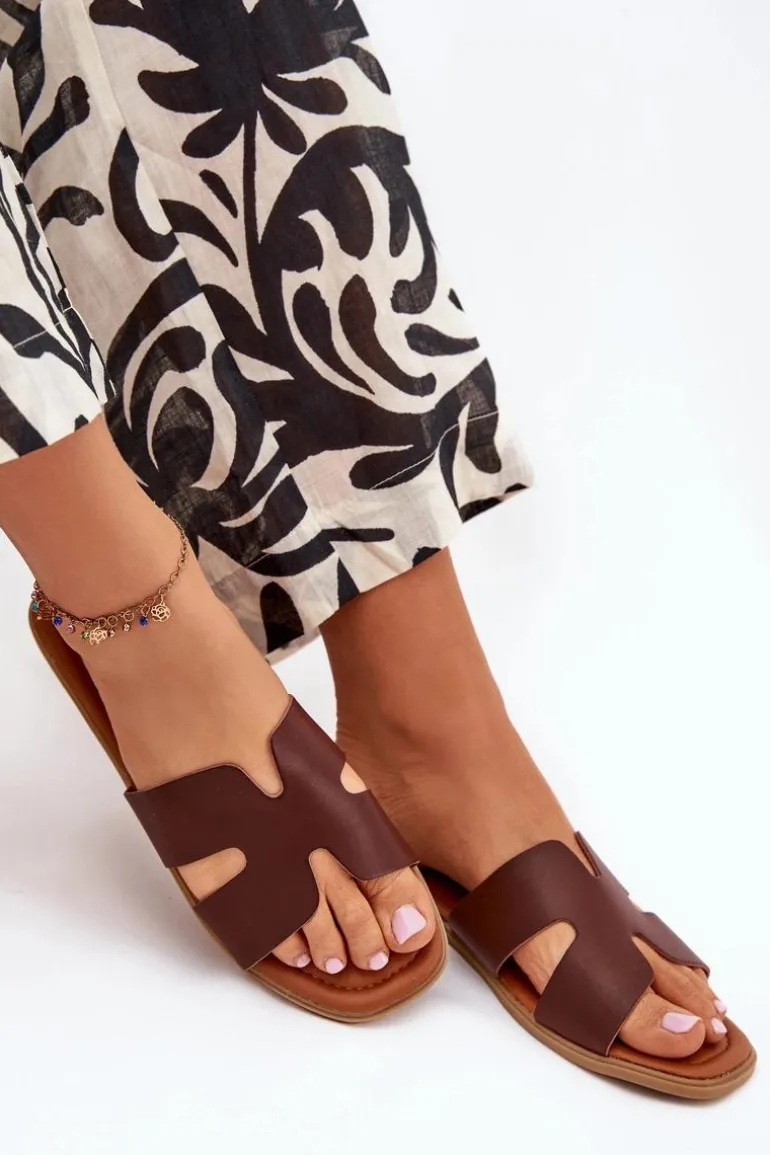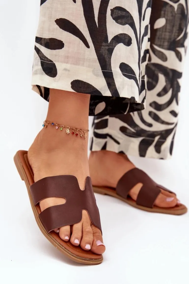 Klapki damskie z eko skóry, osadzone na płaskim obcasie, to połączenie prostoty i elegancji. Pasek z wycięciami dodaje im subtelnego charakteru, a ich klasyczny fason sprawia, że doskonale komponują się z różnorodnymi stylizacjami. Idealne na co dzień, zapewniają komfort i lekkość, dodając letnim outfitom elegancji. Przy wyborze rozmiaru prosimy sugerować się tabelą rozmiarów.