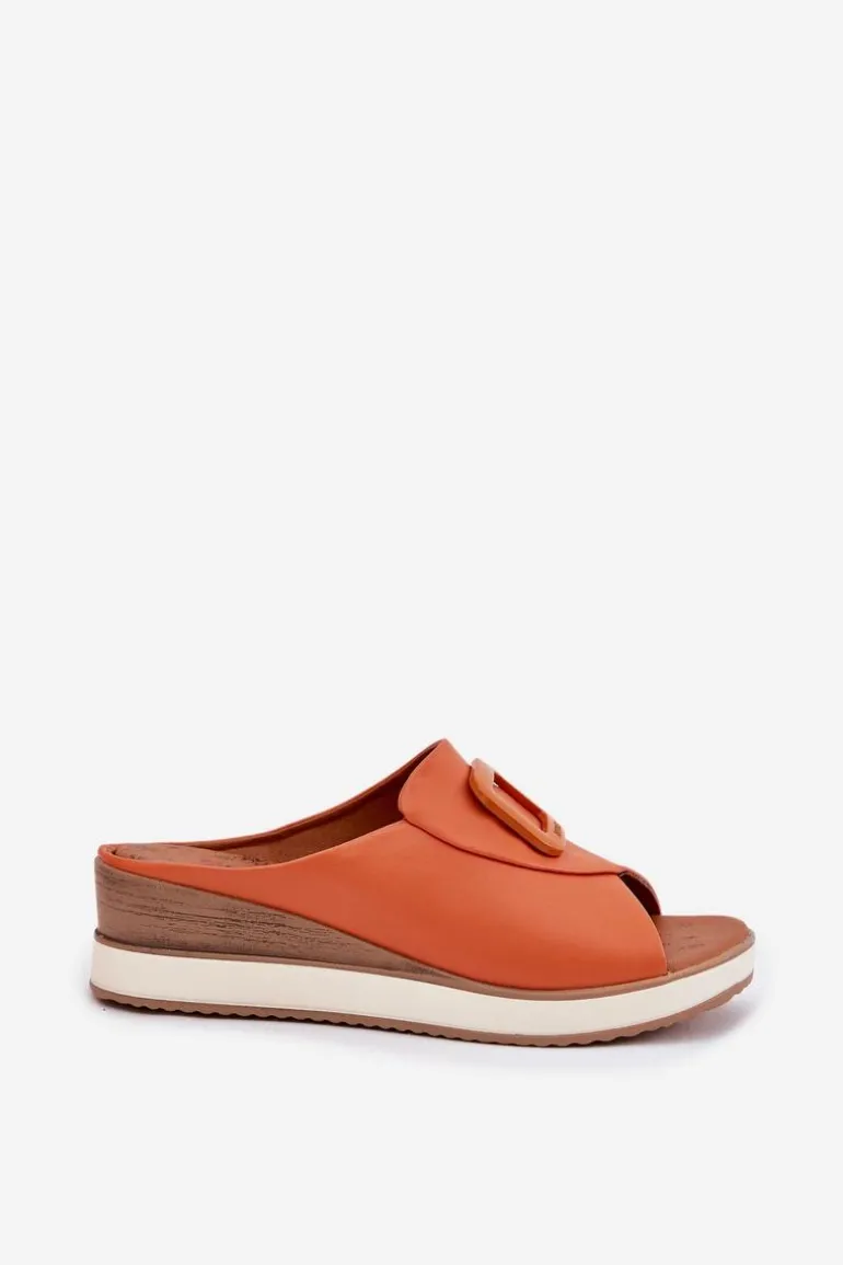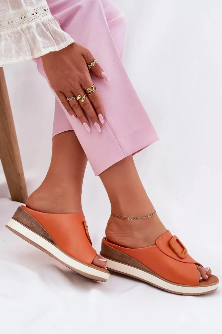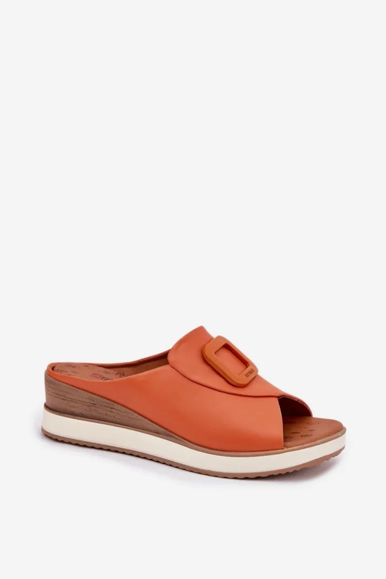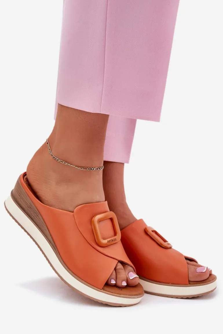 Klapki Damskie Skórzane Na Koturnie Artiker 56C2149 Pomarańczowe