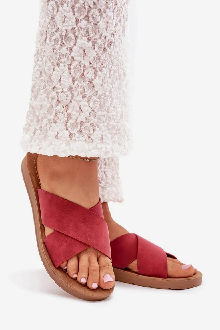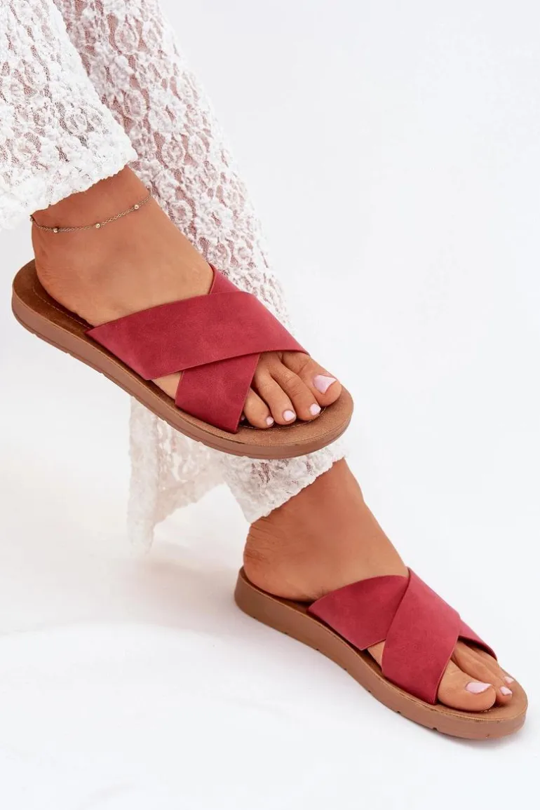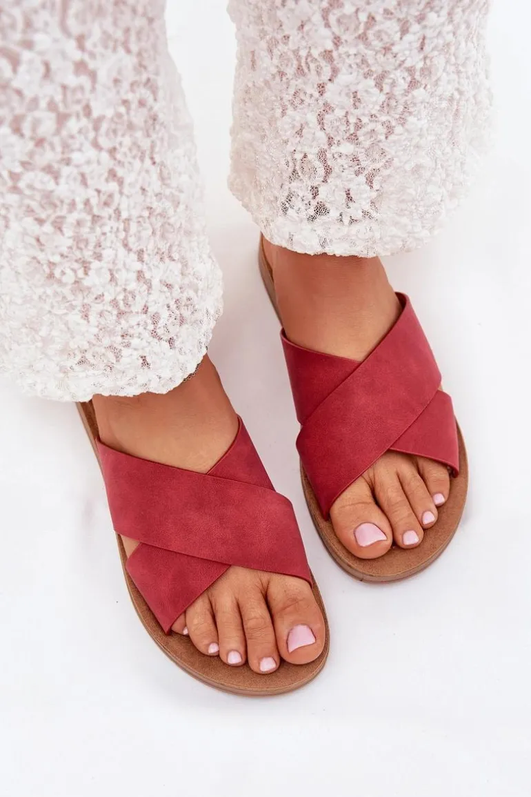 Klapki Damskie Z Eko Skóry Bordowe Lorana