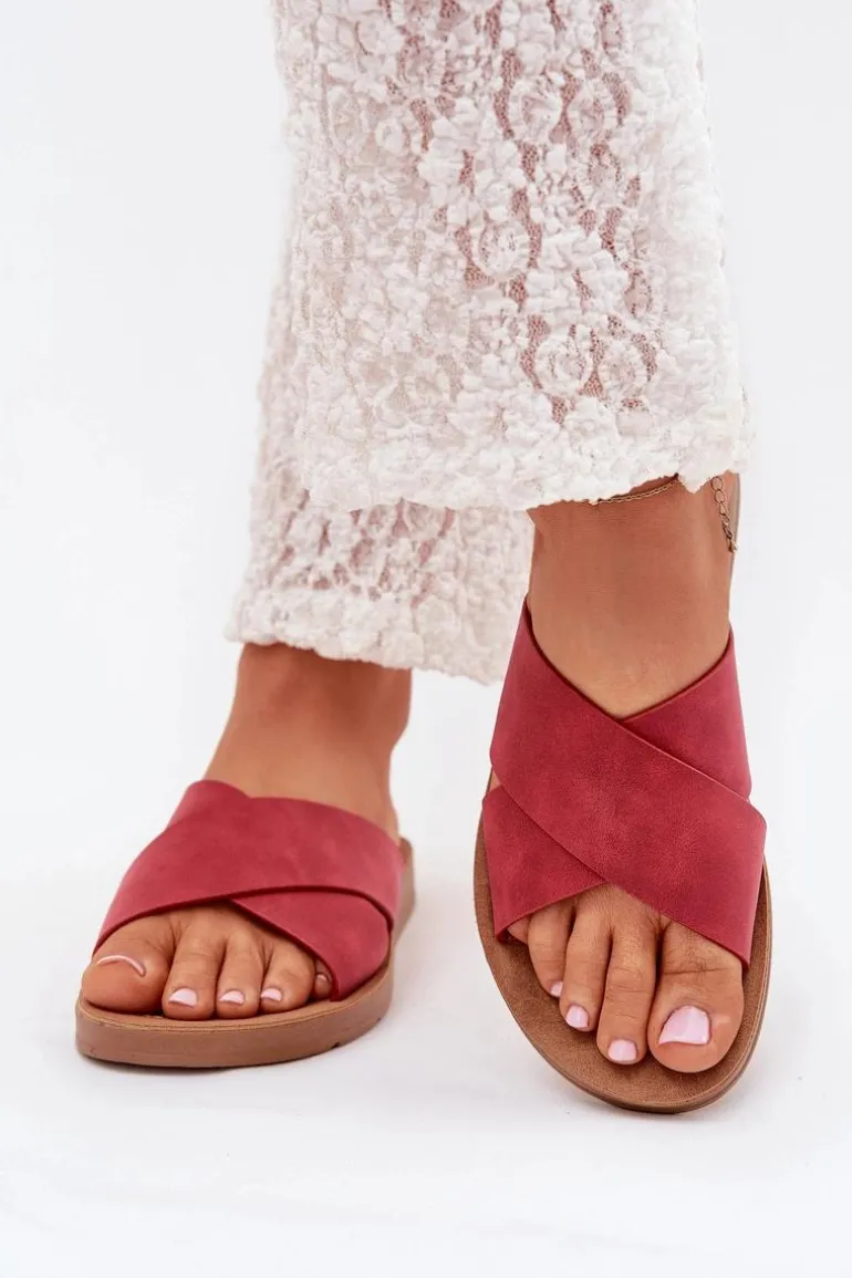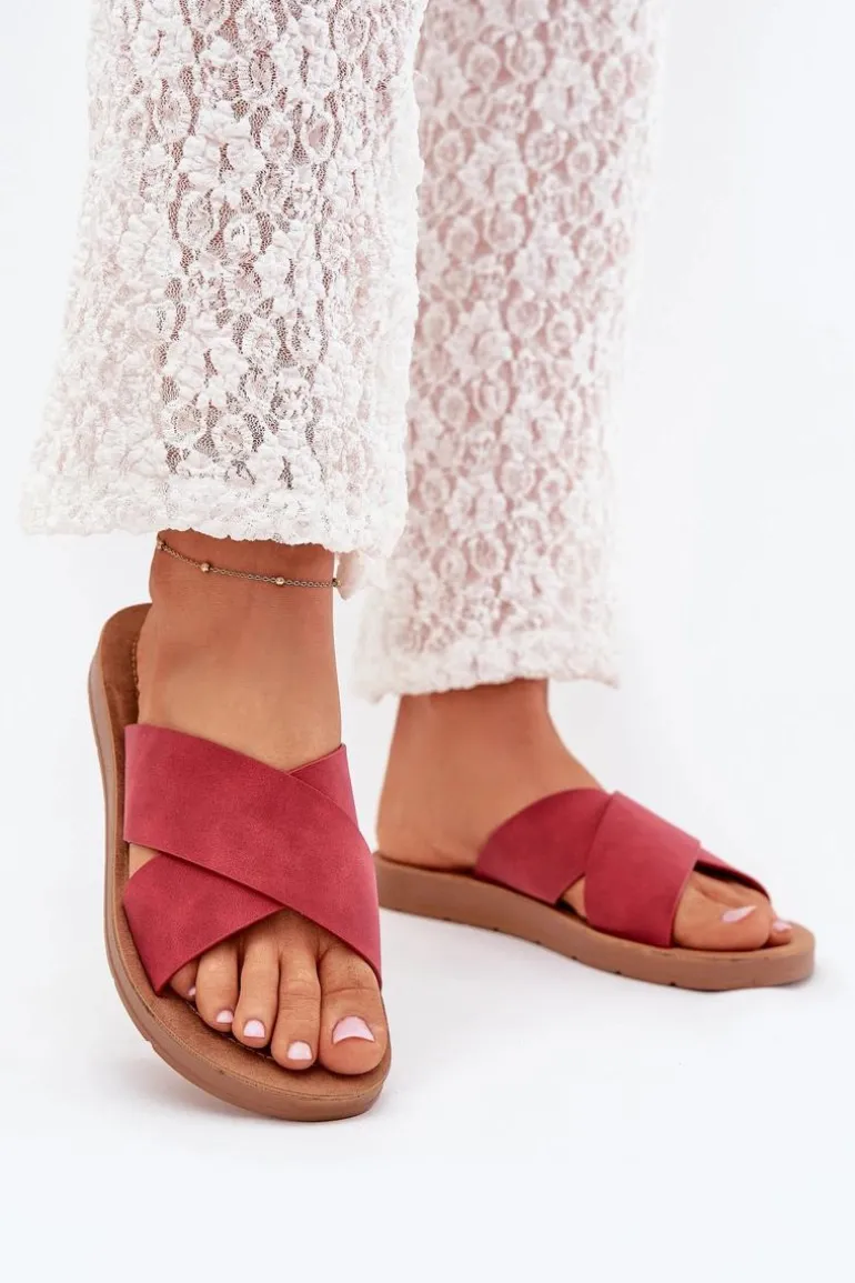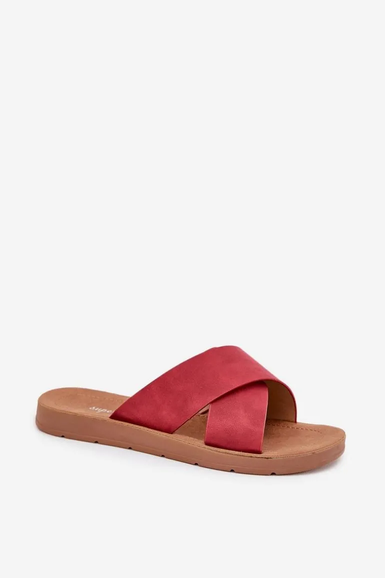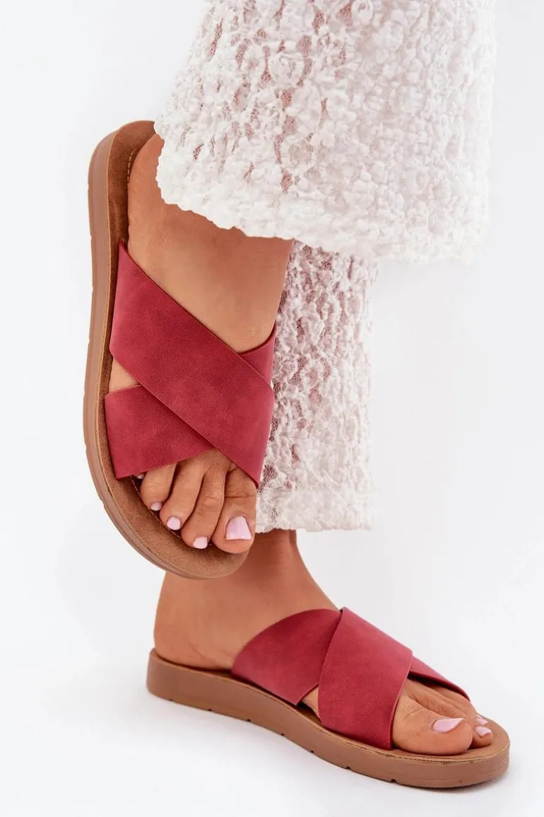 Klapki Damskie Z Eko Skóry Bordowe Lorana