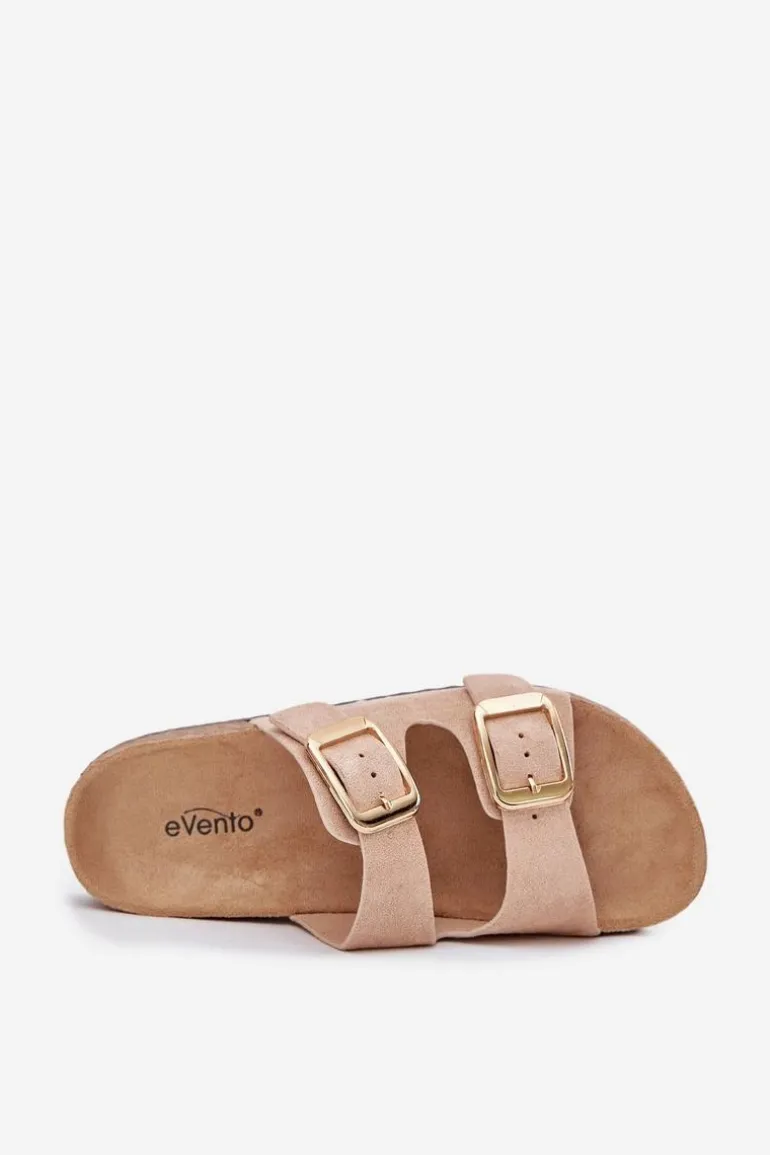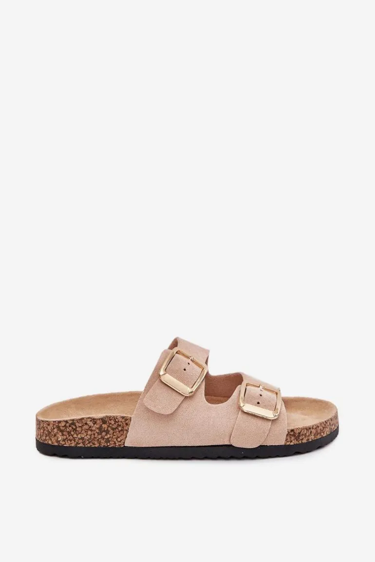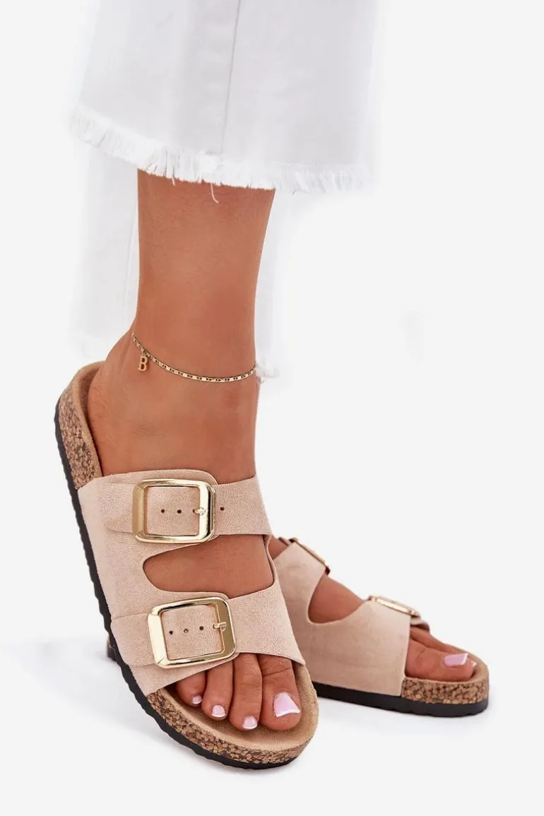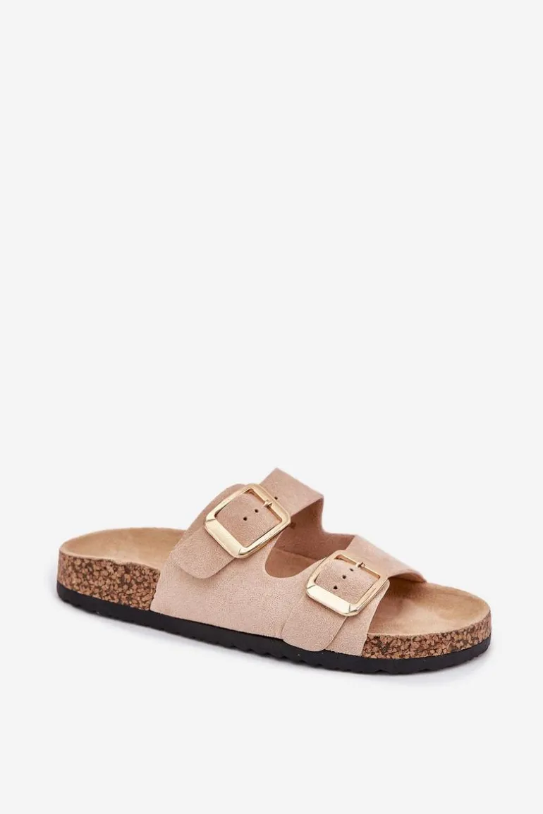 Klapki damskie z eko zamszu na korkowej podeszwie to stylowy wybór na ciepłe dni. Dwa regulowane paski ze złotymi klamrami nadają im eleganckiego charakteru, a jednocześnie zapewniają komfort i idealne dopasowanie. Doskonałe do codziennych stylizacji, łączą wygodę z modnym wyglądem, idealne na spacer czy wakacyjny wyjazd. Przy wyborze rozmiaru prosimy sugerować się tabelą rozmiarów.