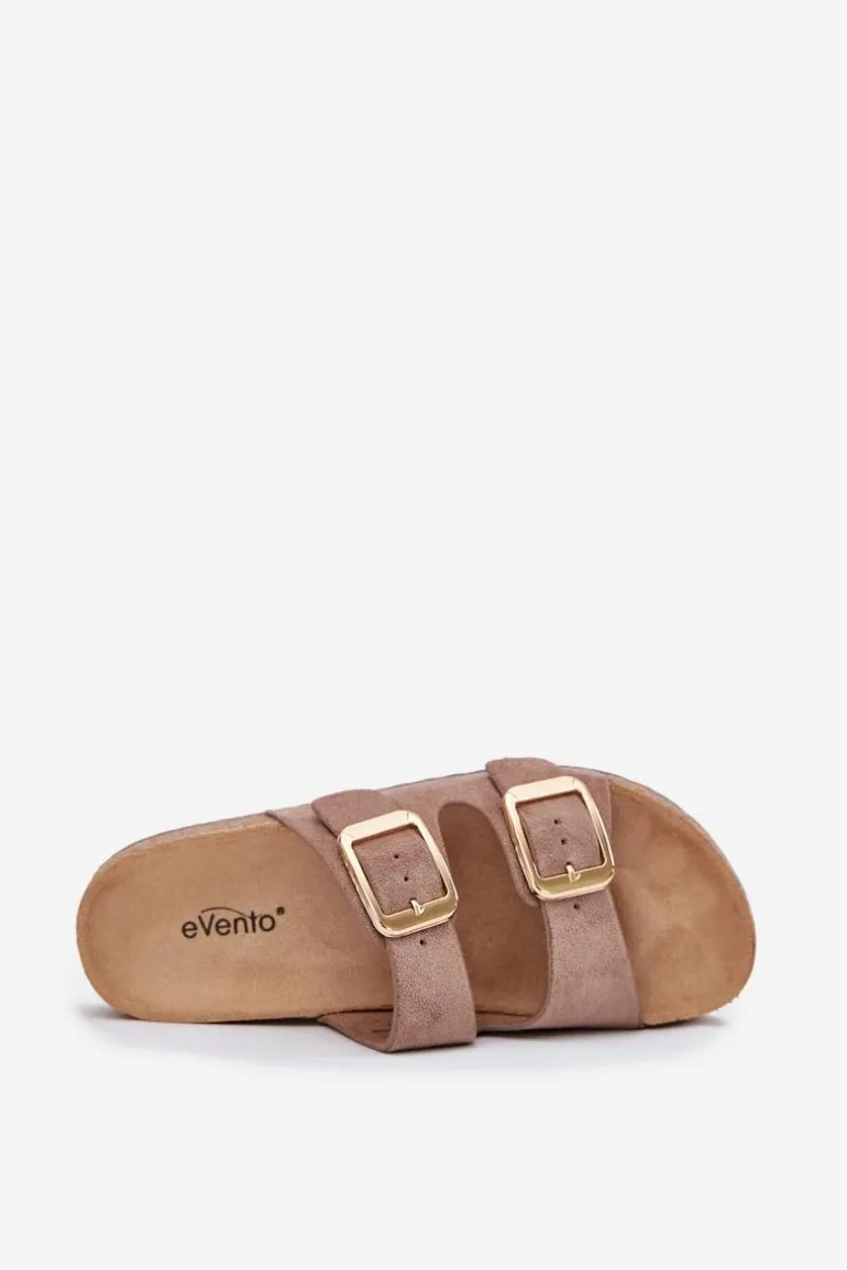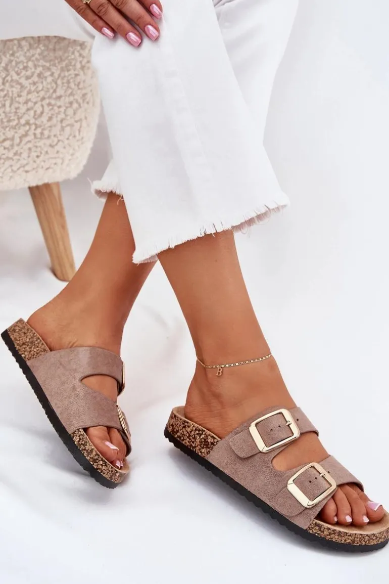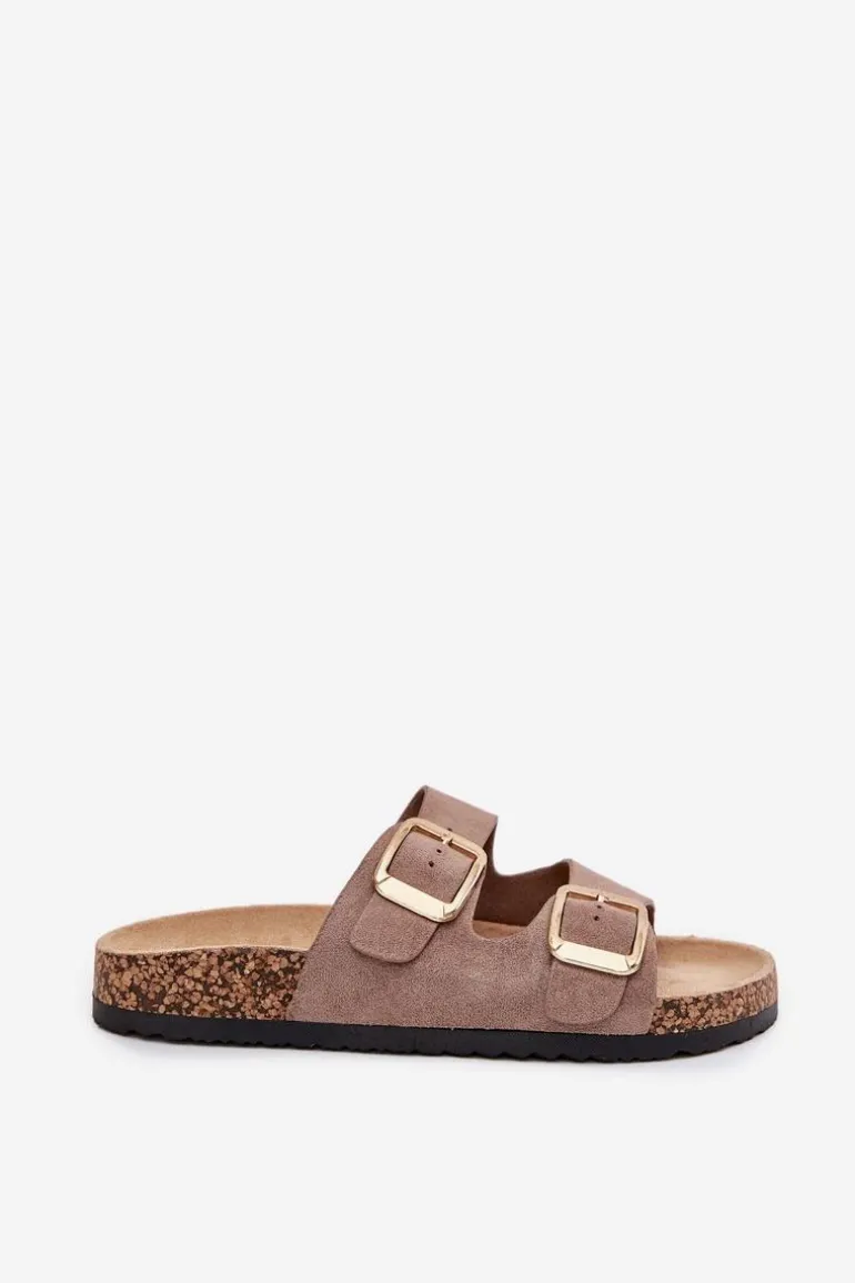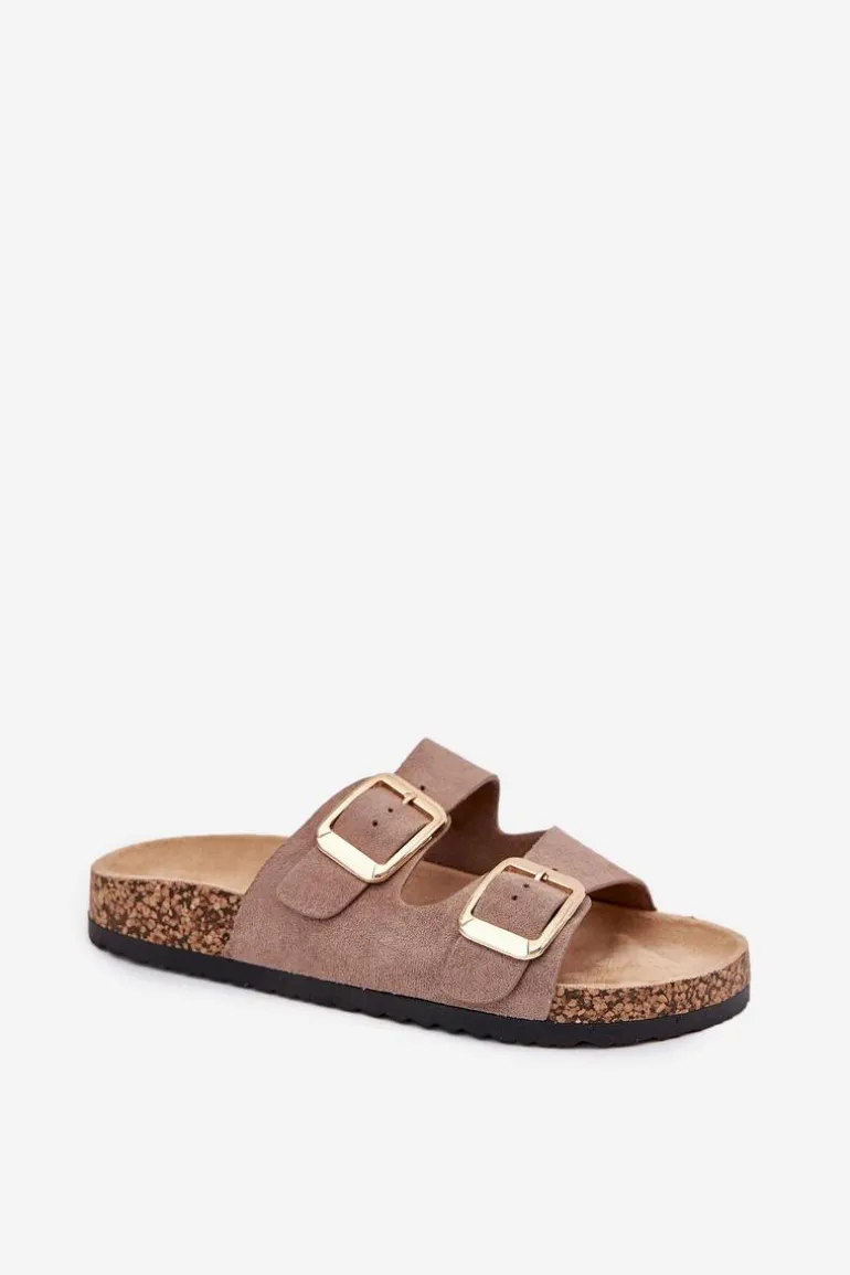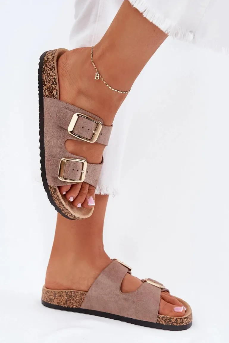 Klapki damskie z eko zamszu na korkowej podeszwie to stylowy wybór na ciepłe dni. Dwa regulowane paski ze złotymi klamrami nadają im eleganckiego charakteru, a jednocześnie zapewniają komfort i idealne dopasowanie. Doskonałe do codziennych stylizacji, łączą wygodę z modnym wyglądem, idealne na spacer czy wakacyjny wyjazd. Przy wyborze rozmiaru prosimy sugerować się tabelą rozmiarów.