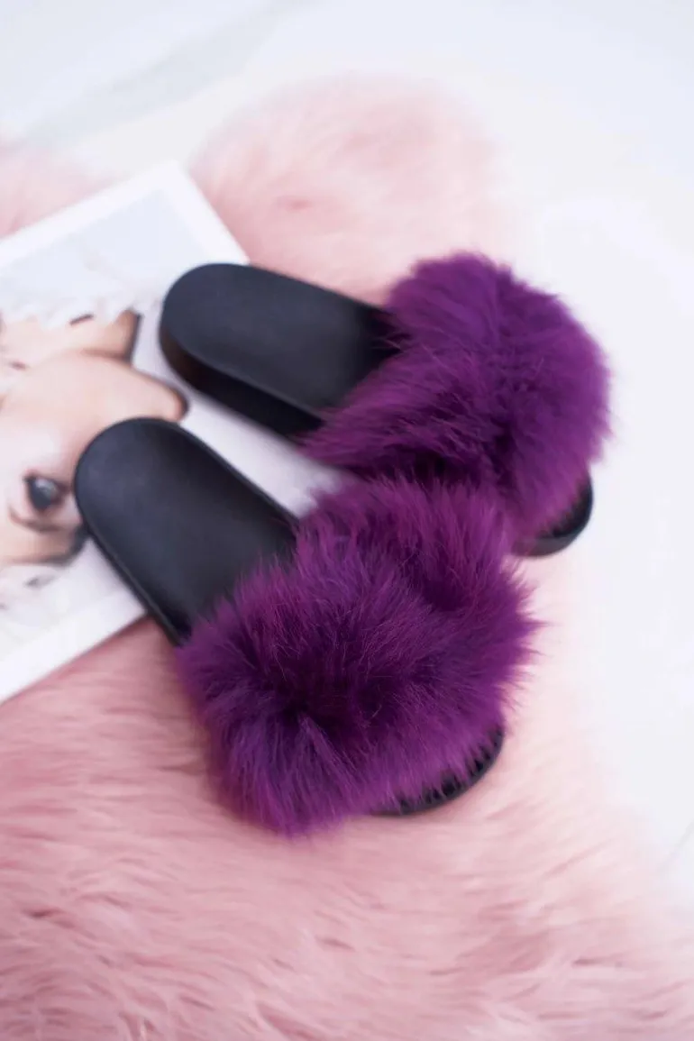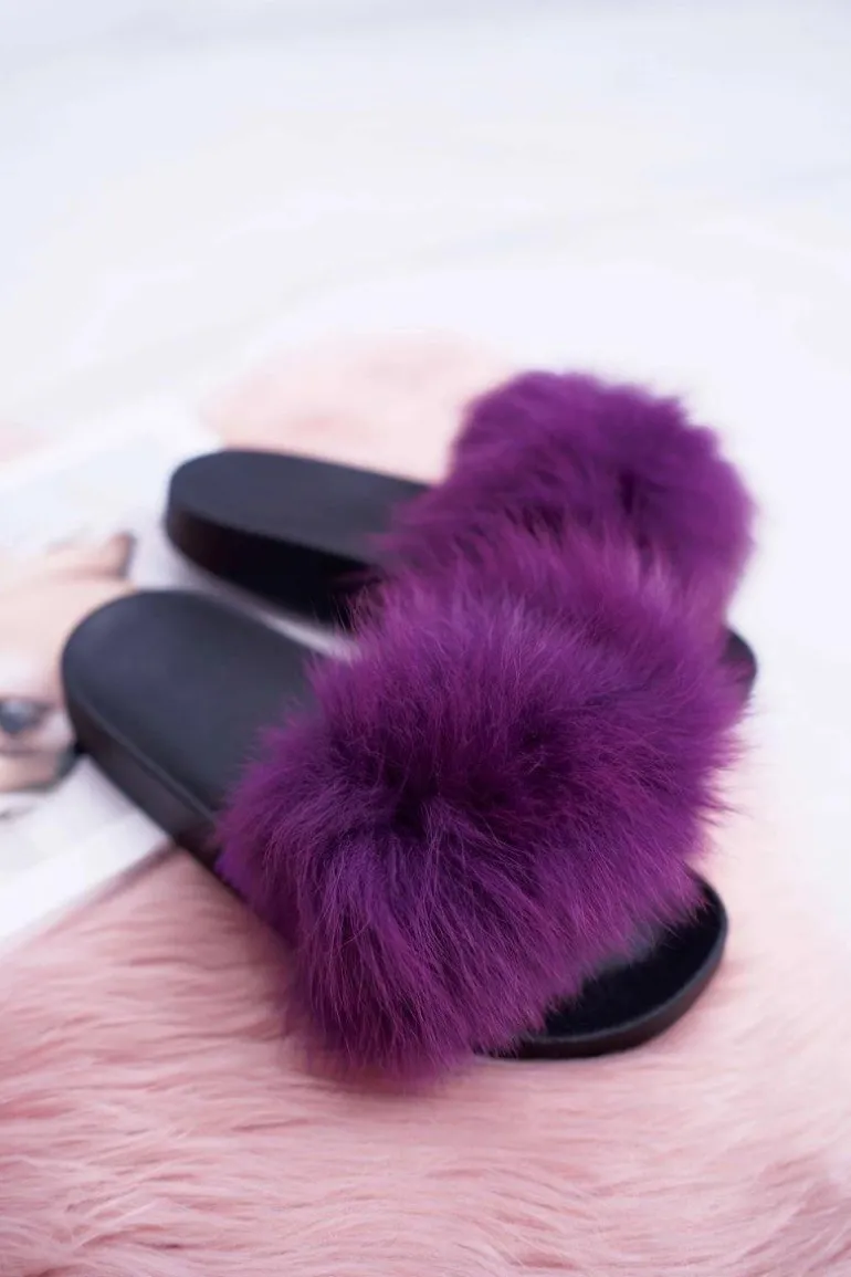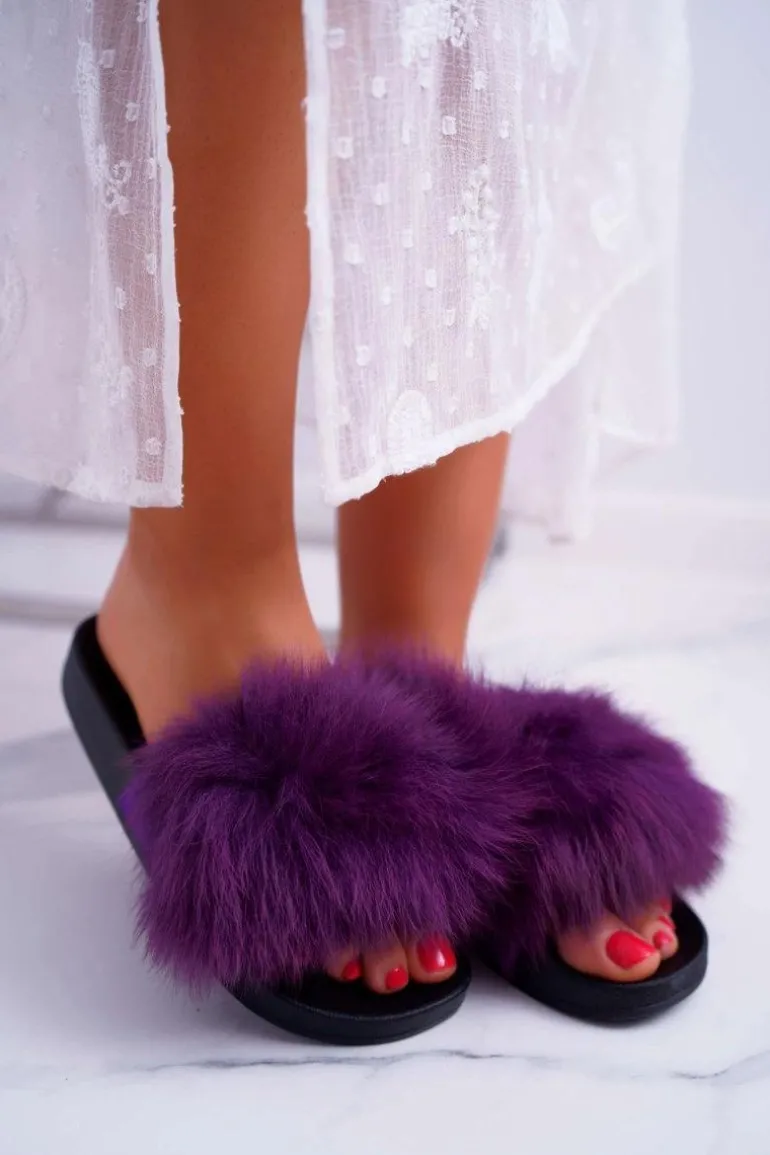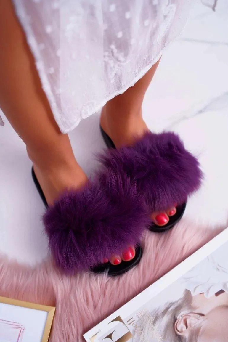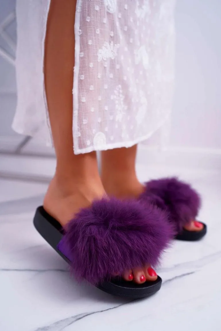 Klapki Damskie Z Futerkiem Fioletowe Mellow