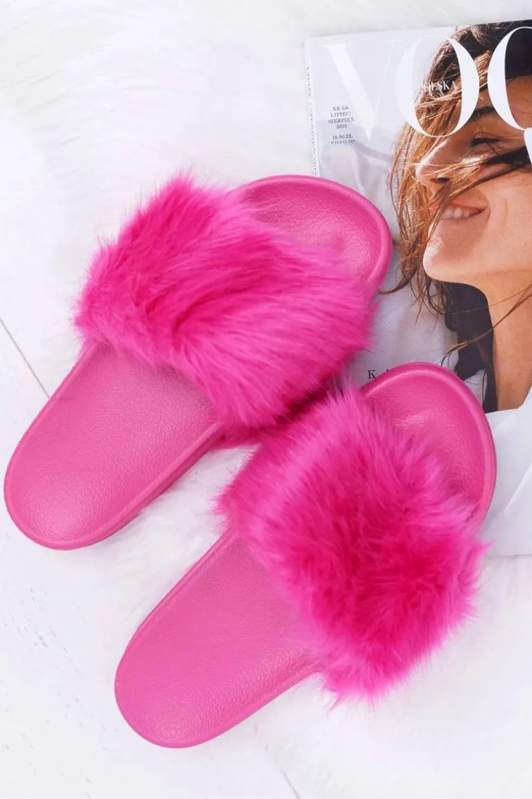 Klapki Damskie Z Futerkiem Fuksja Fur
