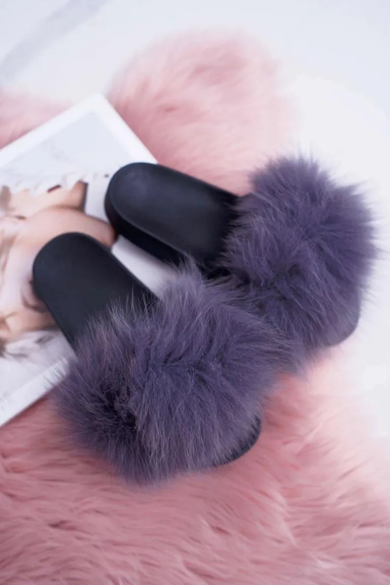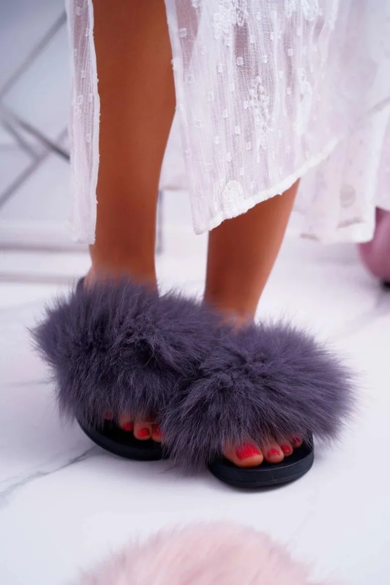Klapki Damskie Z Futerkiem Szare Mellow