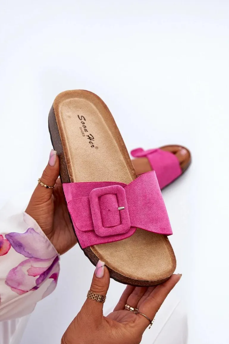 Kapki damskie wykonane z eko zamszu to doskonały wybór na lato. Pasek z klamrą nadaje im modny wygląd. Osadzone na grubej podeszwie, która zapewni stabilność i wygodę podczas chodzenia. Idealne, aby dodać do swojej letniej garderoby nutę stylu i komfortu. Przy wyborze rozmiaru prosimy sugerować się tabelą rozmiarów.