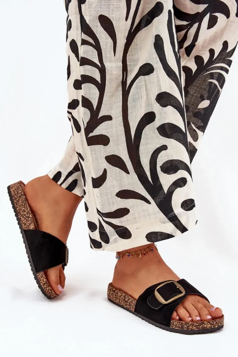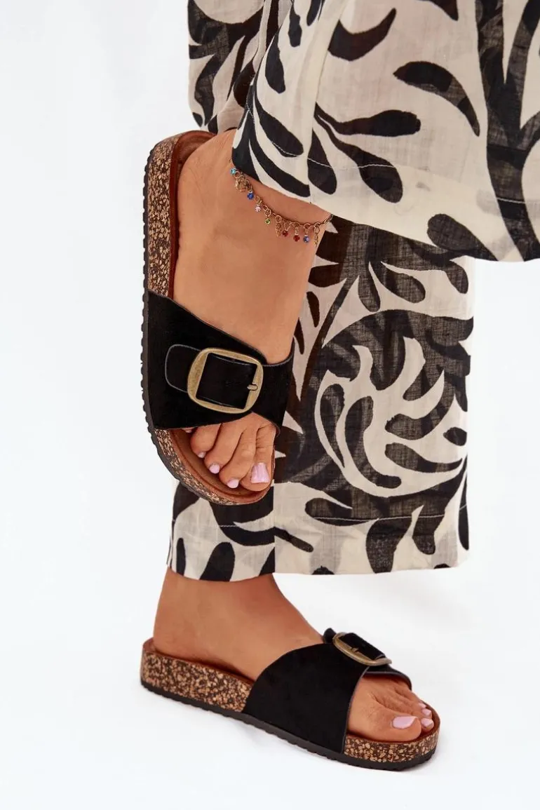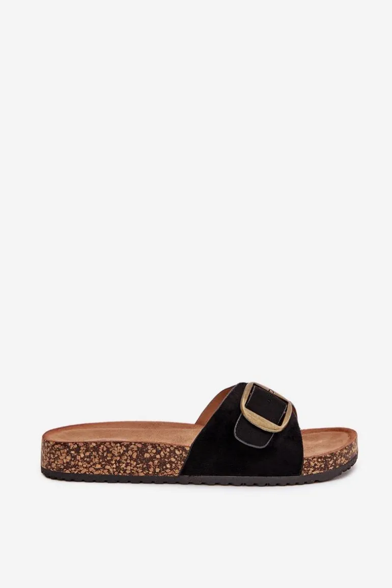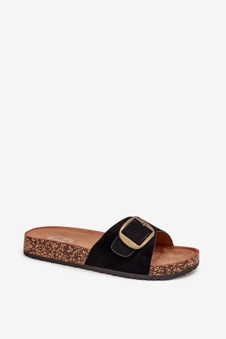 Klapki Damskie Z Klamrą Na Korkowej Platformie Czarne Zavira