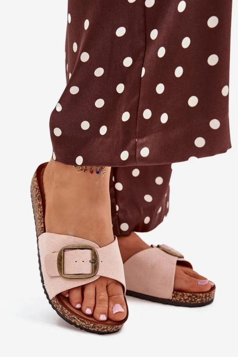 Klapki Damskie Z Klamrą Na Korkowej Platformie Różowe Zavira