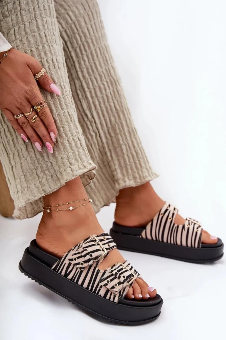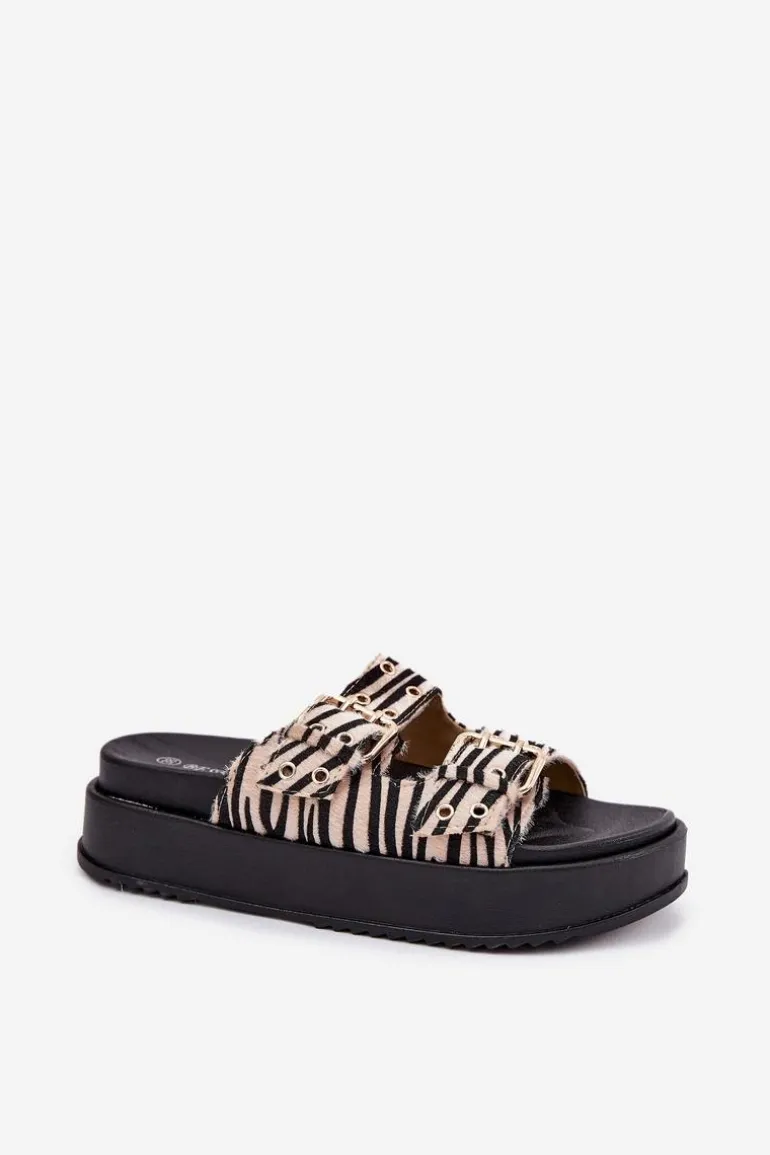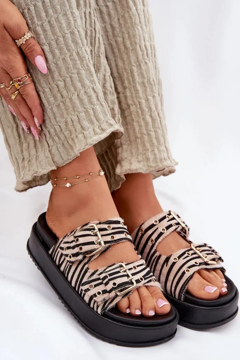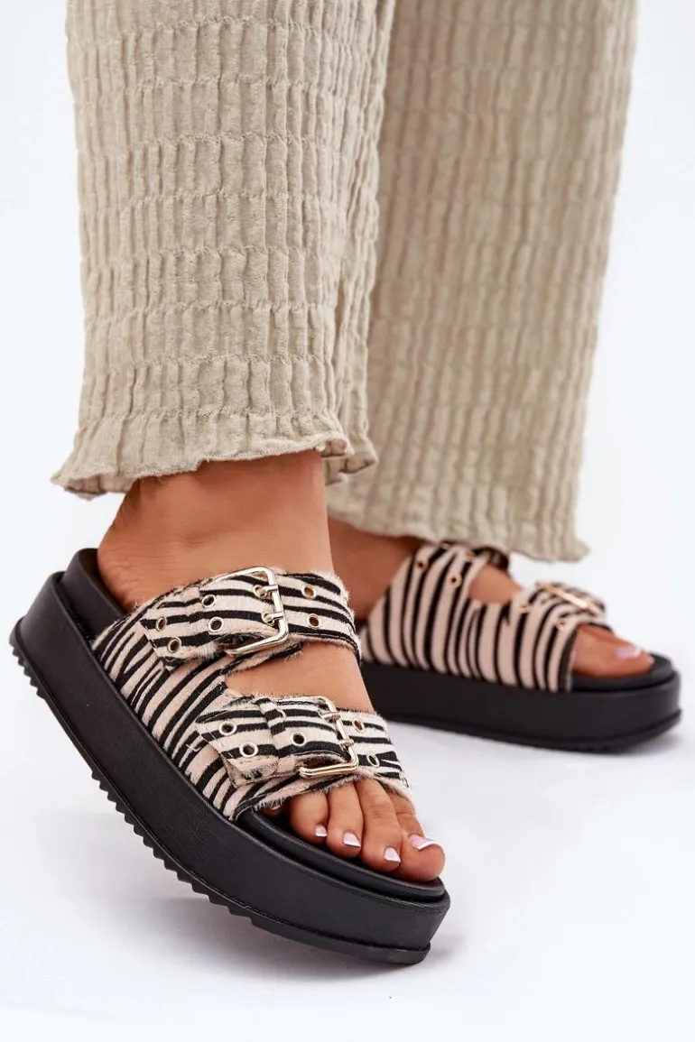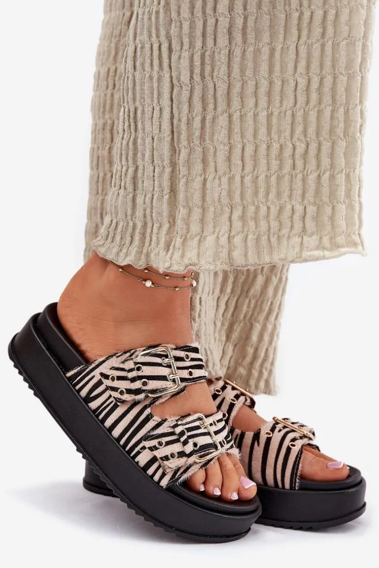 Klapki Damskie Z Klamrami Na Platformie Zebra Nilatha