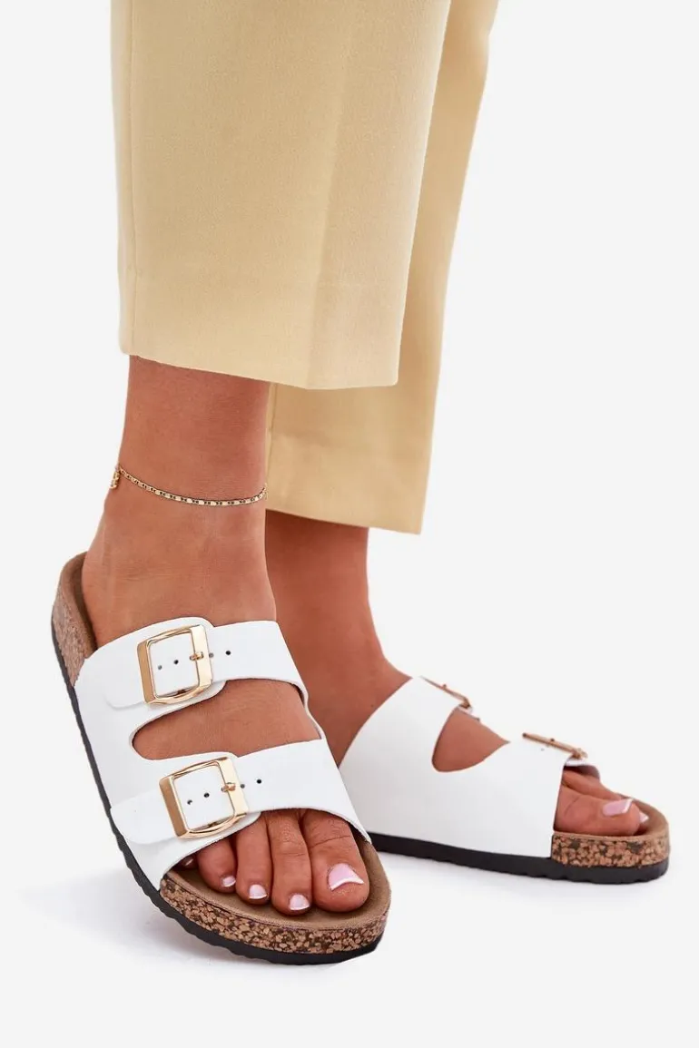Klapki Damskie Z Klamrami Z Eko Skóry Białe Iskira