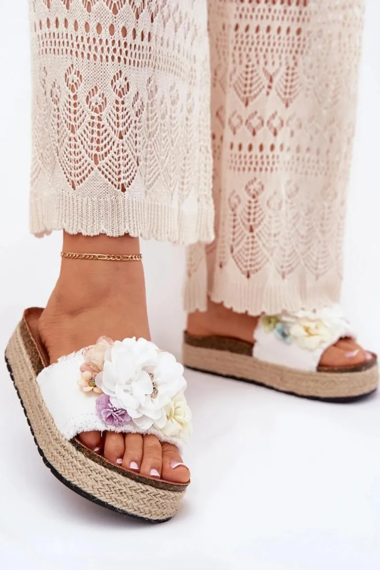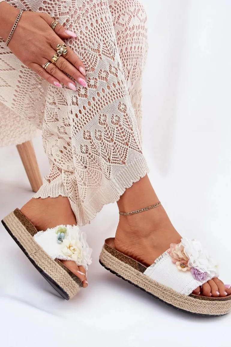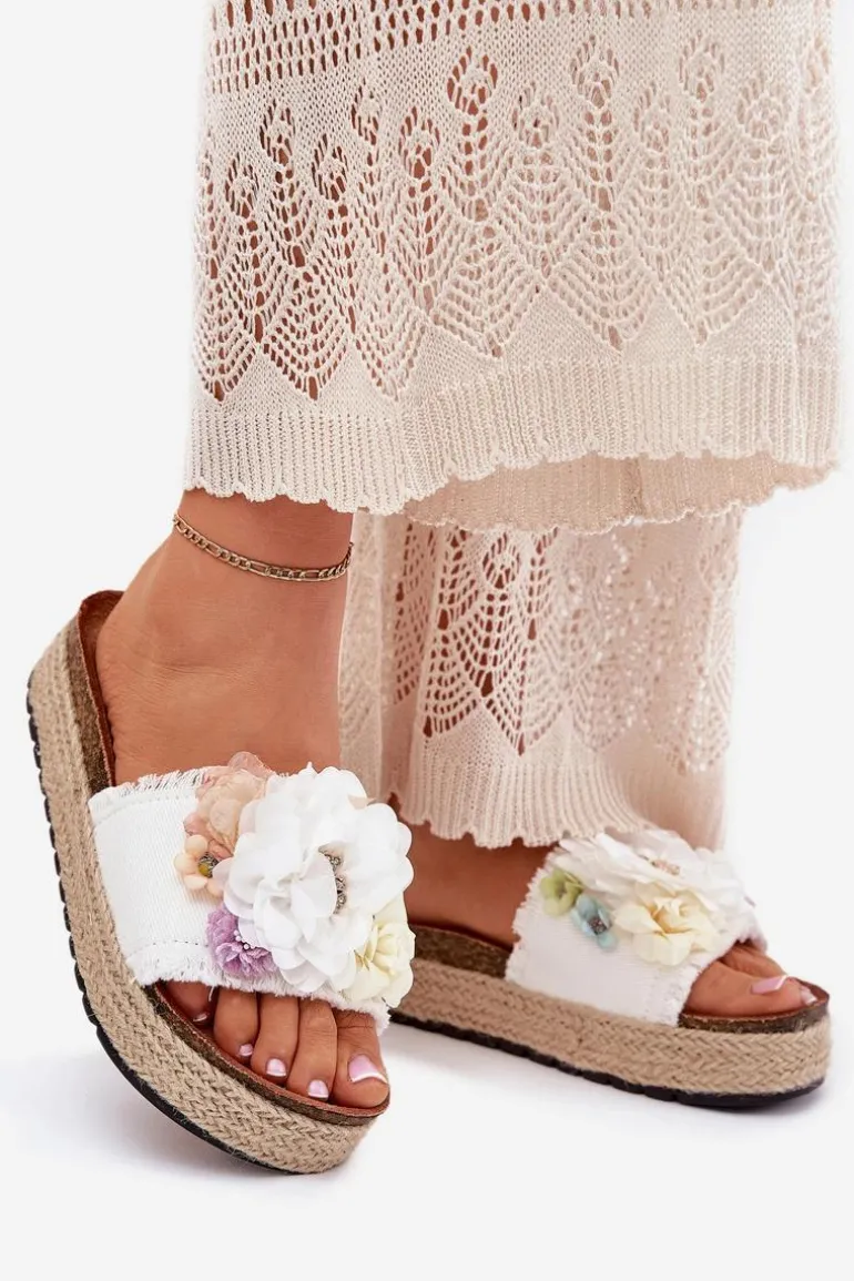 Damskie klapki z urokliwymi ozdobami w postaci materiałowych kwiatów i przypinką w kształcie misia to wyjątkowa propozycja, która doda charakteru każdej stylizacji. Osadzone na masywnej platformie ozdobionej jutową plecionką, łączą wygodę z modnym wyglądem. Profilowana, eko zamszowa wkładka zapewnia komfort przez cały dzień. Ten model z pewnością przyciągnie uwagę i wyróżni Cię z tłumu! Idealne na letnie dni, łączą styl z funkcjonalnością. Przy wyborze rozmiaru prosimy sugerować się tabelą rozmiarów.