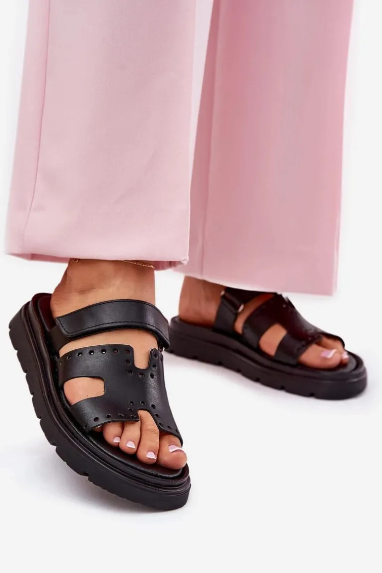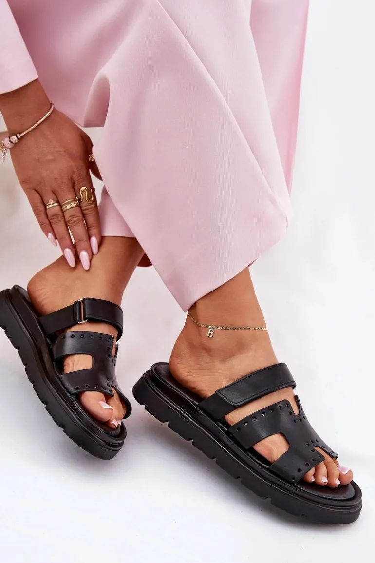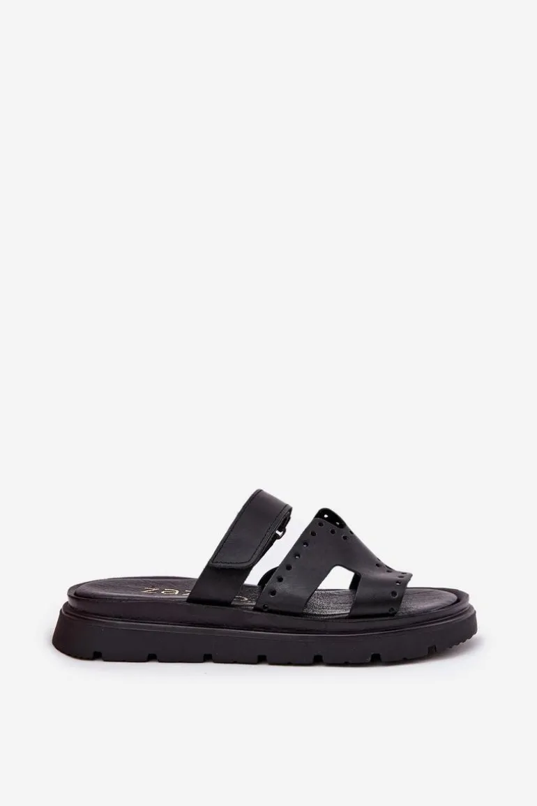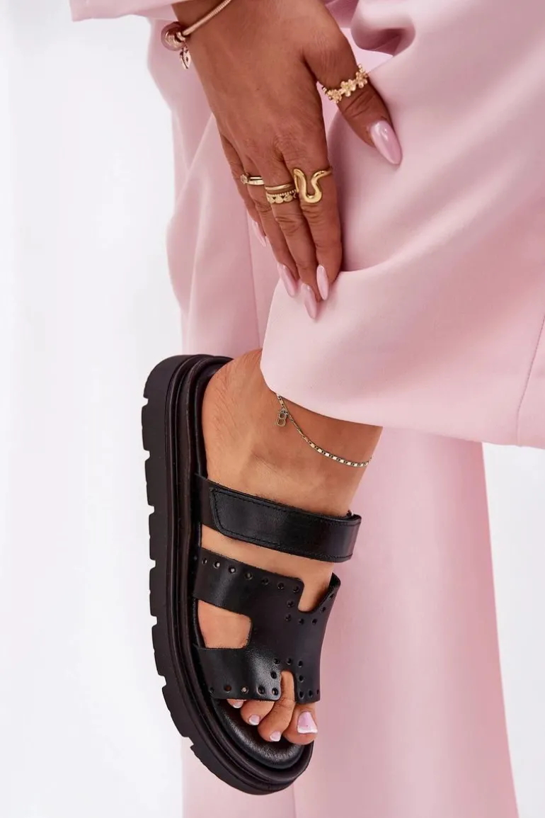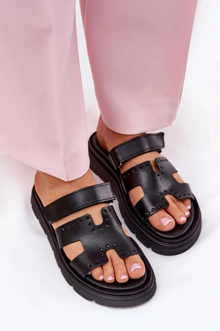 Klapki Damskie Z Naturalnej Skóry Na Platformie Zazoo 40440 Czarne