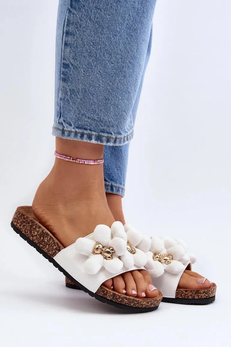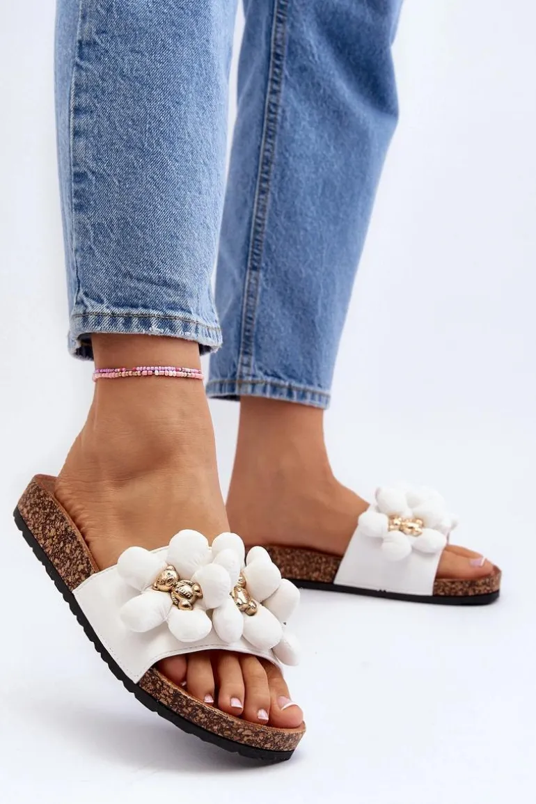 Klasyczne damskie klapki osadzone na masywnej, korkowej platformie. Z przodu ozdoby. Lekko profilowana wkładka jest wygodna w użytkowaniu nawet przez cały dzień. Nie czekaj dłużej i kup już dziś! Koniecznie powinnaś je mieć! Przy wyborze rozmiaru prosimy sugerować się tabelą rozmiarów.