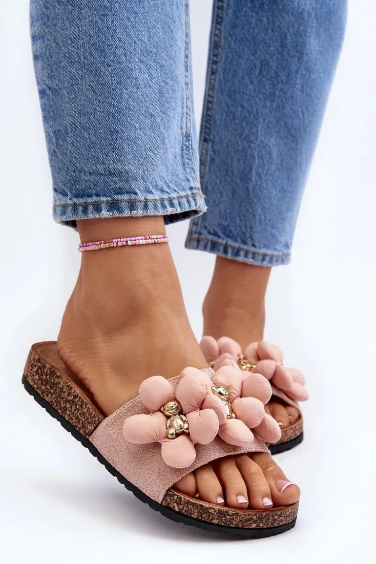 Klasyczne damskie klapki osadzone na masywnej, korkowej platformie. Z przodu ozdoby. Lekko profilowana wkładka jest wygodna w użytkowaniu nawet przez cały dzień. Nie czekaj dłużej i kup już dziś! Koniecznie powinnaś je mieć! Przy wyborze rozmiaru prosimy sugerować się tabelą rozmiarów.