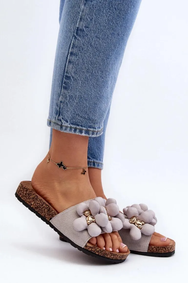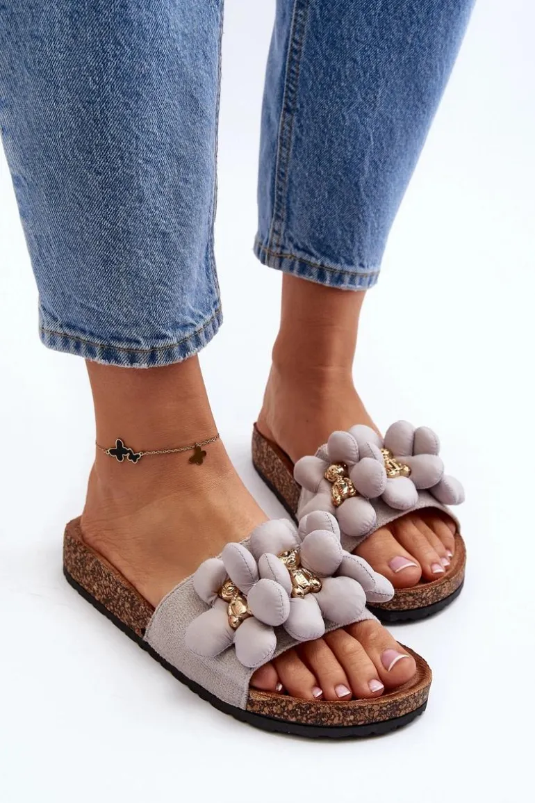 Klasyczne damskie klapki osadzone na masywnej, korkowej platformie. Z przodu ozdoby. Lekko profilowana wkładka jest wygodna w użytkowaniu nawet przez cały dzień. Nie czekaj dłużej i kup już dziś! Koniecznie powinnaś je mieć! Przy wyborze rozmiaru prosimy sugerować się tabelą rozmiarów.