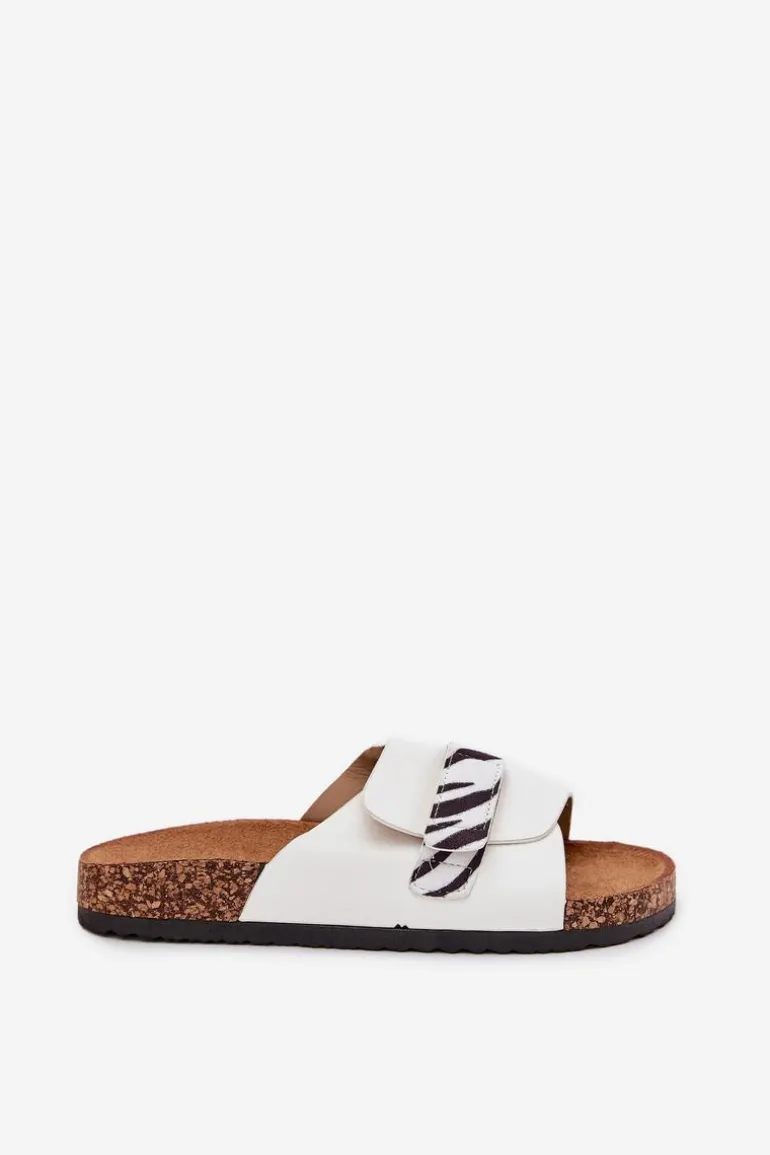 Klapki Damskie Z Rzepem Na Korkowej Platformie Białe Baylin